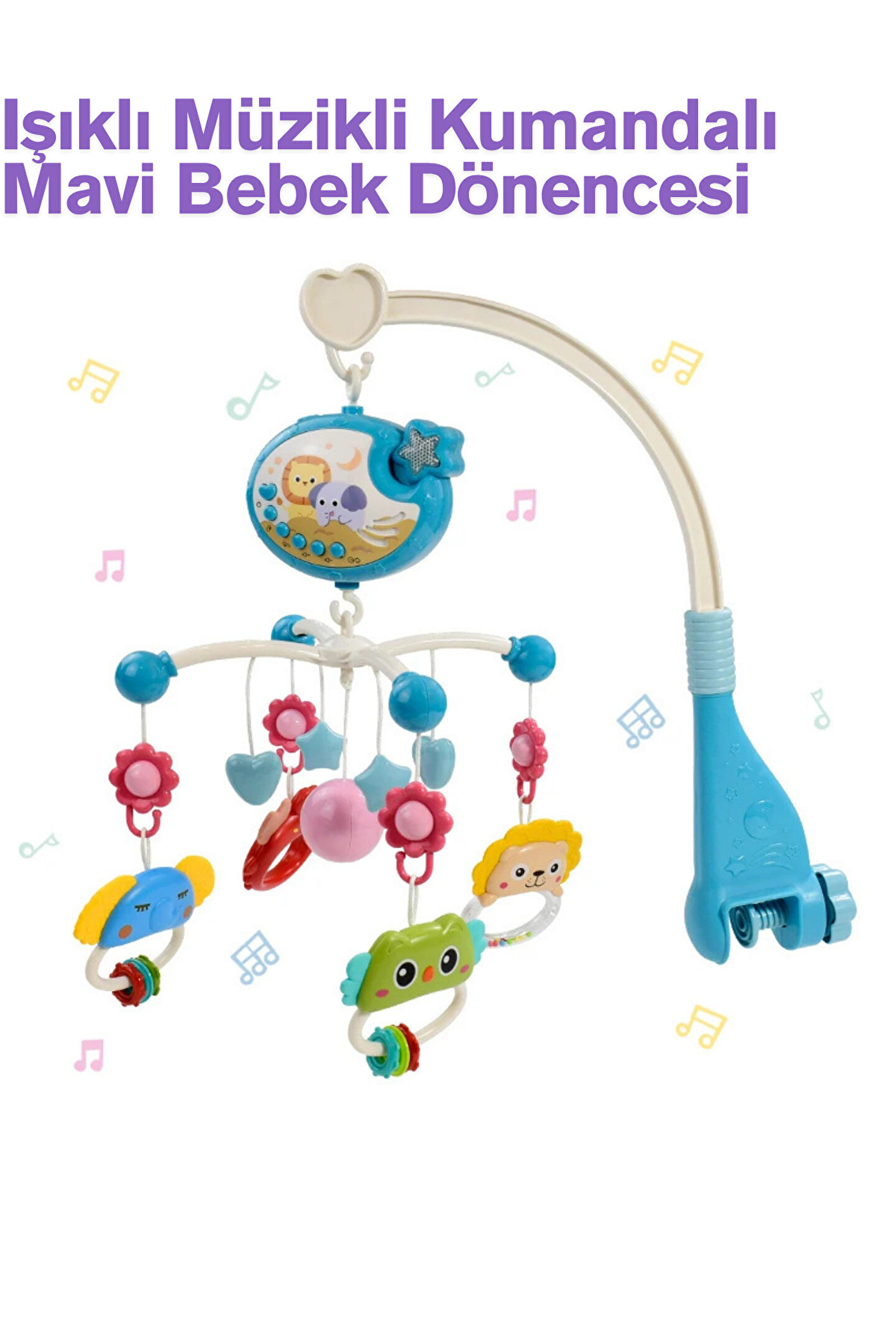 - Bebeğinizin uyku saatlerini daha keyifli hale getirmek için tasarlanmış, müzikli ve ışıklı projeksiyonlu bebek yatıştırıcı dönence.; - Kolay kullanım sunan kumanda özelliği ile bebeğinizin dikkatini çekecek şekilde ayarlanabilir ses seviyesi ve renk seçenekleri.; - 0 ila 1 yaş arası bebekler için idealdir; miniklerin gelişimine katkıda bulunan eğitici ve eğlenceli bir deneyim sağlar.; - Güvenilir ithalatçısı Vardem tarafından üretilmiş olup, kalite standartlarına uygun olarak tasarlanmıştır.; - Canlı mavi rengiyle hem şık görünüm sunar hem de bebeğinizin odasına neşe katar.; - Piller kutuya dahil değildir ancak kolayca temin edilebilen pillerle çalışır; böylece ekstra malzeme ihtiyacını ortadan kaldırır.