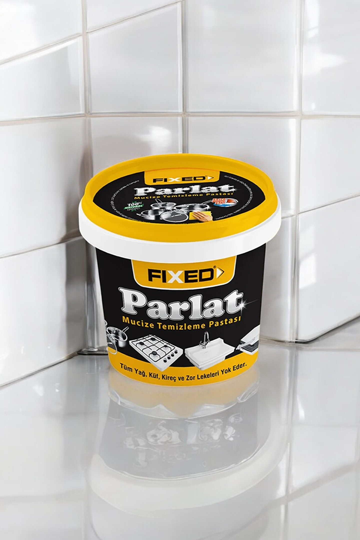 Kireç, yağ, küf gibi zorlu lekeleri yok eder. ; Kolay kullanım & mükemmel sonuç. ; Fixed parlatır mermer, fayans, seramik yüzeyler, lavabo ve musluklar, mutfak gereçleri, banyo yüzeyleri, ocak üstleri, fırınlar, barbekü, mangallar ve ayakkabı gibi lekeli ve kirli yüzeylerde temiz bir bez yardımıyla ovalayarak kullanabilirsiniz. ; Yeterince ovalama sonrası su ile yüzeyi durulayınız. ; Plastik parçalar, boyalı ahşap ve alüminyum yüzeylerde kullanmayınız. ; Ürünü el, yüz ve yiyecek temizliğinde kullanmayın. ; Sıcak yüzeylere doğrudan uygulamayın. ; Cam ve seramiklere uygularken, bu yüzeyleri çizilebileceğinden çok fazla bastırmayın..;