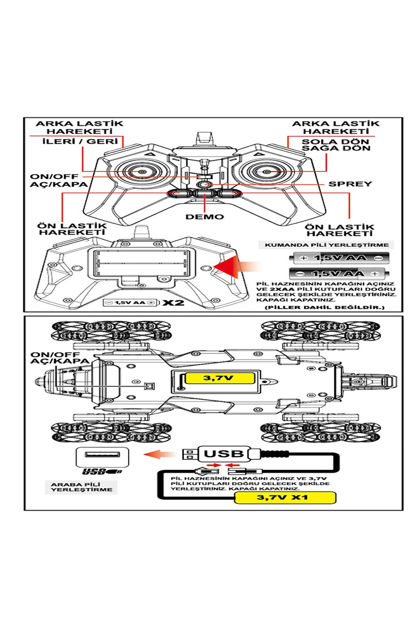 USB Şarj Edilebilir Batarya: Çevre dostu tasarım ile 3.7V batarya, USB üzerinden kolayca şarj edilir. Uzun süreli oyun süresi sunarak kesintisiz eğlence sağlar.