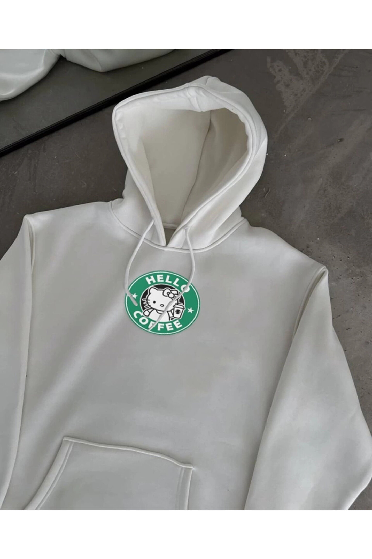 MDB Üç İplik Penye Uzun Kol Kapşonlu weathirt Beyaz