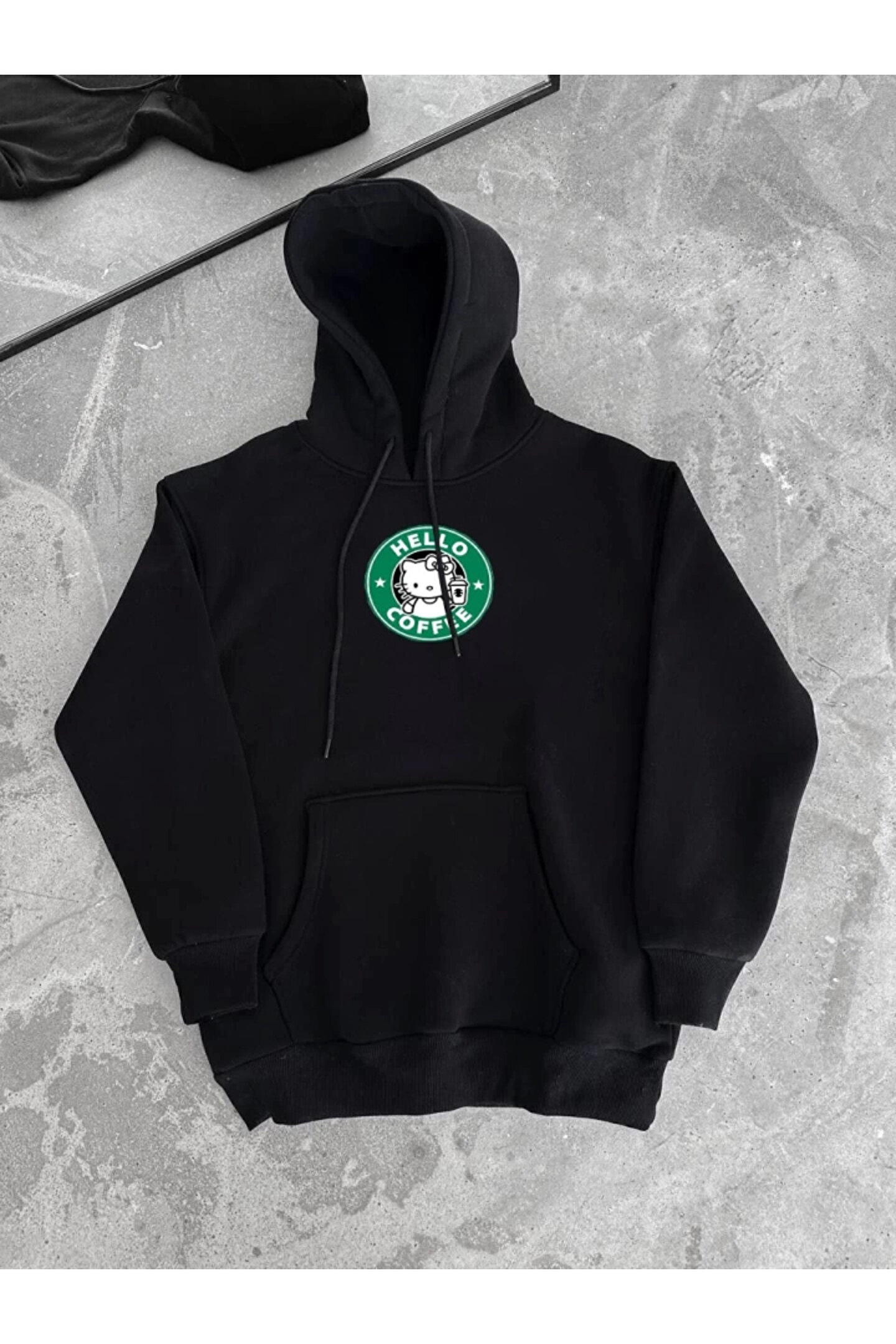 Üç İplik Penye Uzun Kol Kapşonlu SweatShirt - Siyah