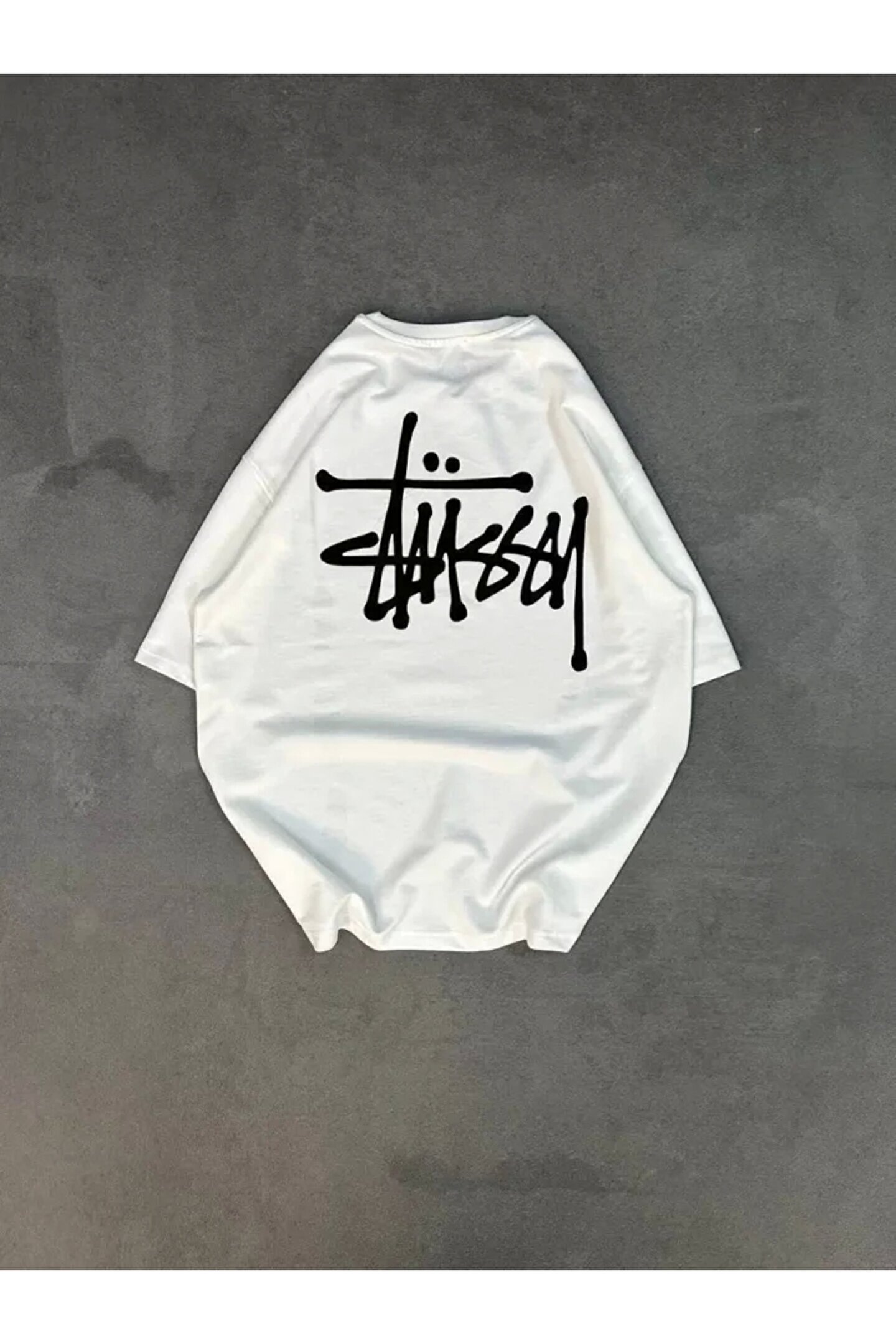 Unisex Bisiklet Yaka Baskılı Oversize T-Shirt - Beyaz Modelin Ölçüleri: Boy:165, Kg:55, Göğüs:90, Bel:72, Kalça: 100 Modelin üzerindeki ürün M/38 bedendir
