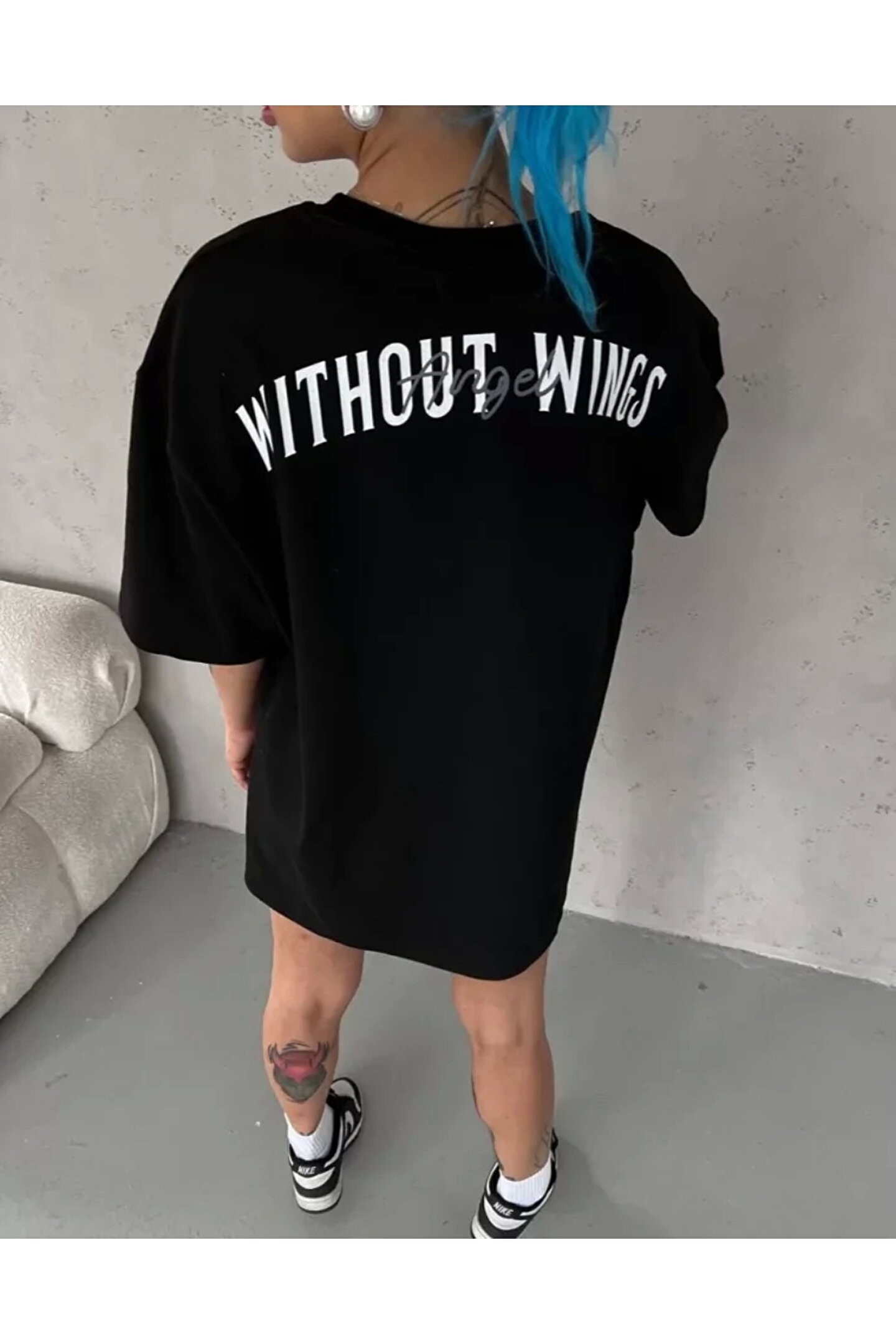 Unisex Bisiklet Yaka Baskılı Oversize T-Shirt - Siyah Modelin Ölçüleri: Boy:165, Kg:55, Göğüs:90, Bel:72, Kalça: 100 Modelin üzerindeki ürün M/38 bedendir