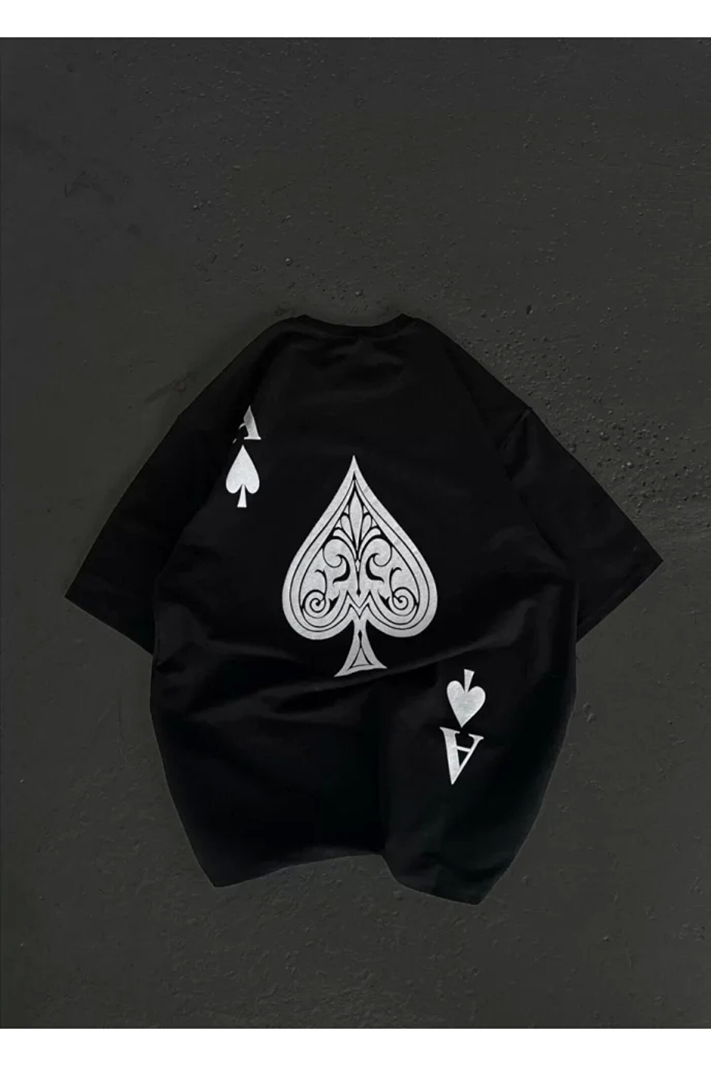 Unisex Bisiklet Yaka Baskılı Oversize T-Shirt - Siyah