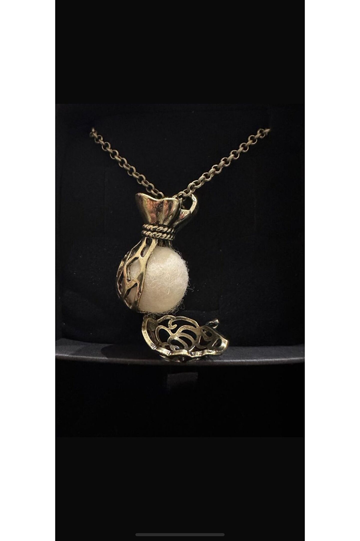 Aromaterapi kolyesi uçucu yağ parfüm diffüzör kolye Aromaterapi kolyeleri çok eski çağlardan bu yana süs eşyası ve çeşitli amaçlar için kullanılmış olan özel takılardır.; Bir süs eşyasının zenginlik ve zerafeti ile ,içinde bulundurulan doğanın gücü bitkilerin saf uçucu yağlarının yüzyıllardır kullanılan Etkilerini bir araya getirir.; Üzerinizde taşıyacağınız aromaterapi kolyelerinin her Biri bir anlam taşıyan zarif tasarımlardan oluşmaktadır.; Içindeki keçe topa damlatacağınız aromaterapi yağları ise sizler için özel olarak hazırlanmış olup, doğanın büyülü gücünü gün boyunca yanınızda hissetmenizi sağlayacaktır.; Dilerseniz kullandığınız parfümü de kolyeniz içinde gün boyu değişmeden ısı ve nemden etkilenmeden ve giysilerinize temas etmeden kullanabilirsiniz.; Sizlere beğeneceğinizi umduğumuz bir konsantre parfüm de hediye olarak gönderiyoruz.; Lavanta yağı 2ml : Lavandula angustifolia bitkisinin çiçeklerinden distilasyon yoluyla elde edilmiş %100 doğal uçucu yağdır.; Aromaterapide rahatlatıcı, kaygı ve gerginlik azaltıcı, ağrı azaltıcı, uyku kalitesini artırıcı, ve doğal böcek savar özellikleri nedeniyle kullanılmaktadır.; Duygusal ve fiziksel iyilik hali için destekleyici özelliktedir.; Kesinlikle tıbbi tedavi yerine geçmez.; Gebe ve çocuklarda kullanımı için mutlaka hekiminize danışmanız önerilir.