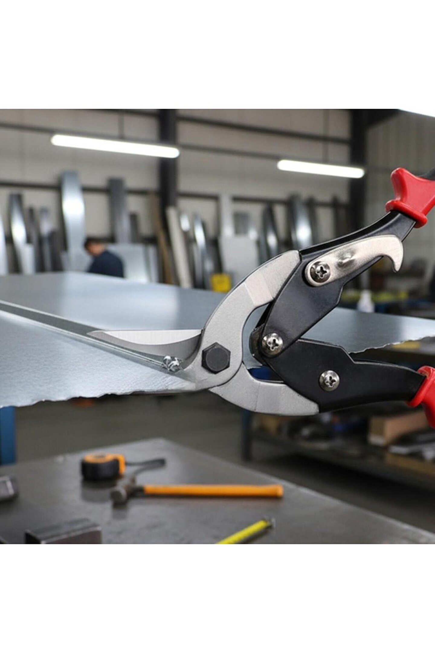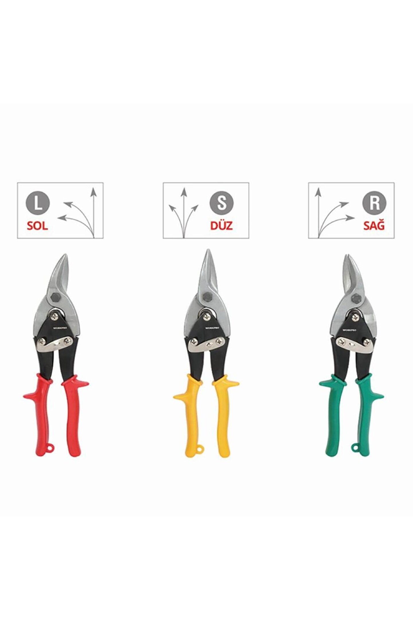 - WORKPRO WP200001 250mm 3 Parça Sağ/Sol/Düz Profesyonel Kaportacı Makası - Sağ- Sol ve Düz kesimler için tasarlanmış dövme çelik kesici bıçaklar sayesinde sac, metal levhalar, kauçuk veya PVC gibi malzemelerin profesyonelce kesimi için idealdir.; - Yüksek kaliteli paslanmaz dövme çelik kullanılmıştır, hassas ve ısıl işlemden sonra kesici uçları daha sert ve dayanıklı hale getirilmiştir.; - Paslanmaz dövme çelikten üretilmiş uzun ömürlü sağlam yapı.; - Çapaksız kesim yapmayı sağlayan özel ağız yapısı.; - Daha fazla kontrol ve daha az el yorgunluğu için parmak yuvaları.; - Kesim sırasında kaymayı engelleyen tırtıklı kesici bıçak.; - Tek parmakla kilitlenmeyi sağlayan entegre kilit mekanizması ile güvenli kullanım sağlar.; - Yüksek kaliteli dövme çelik kullanılmıştır, hassas ve ısıl işlemden sonra kavrama ve kesici dişler daha sert ve dayanıklı hale getirilmiştir.;