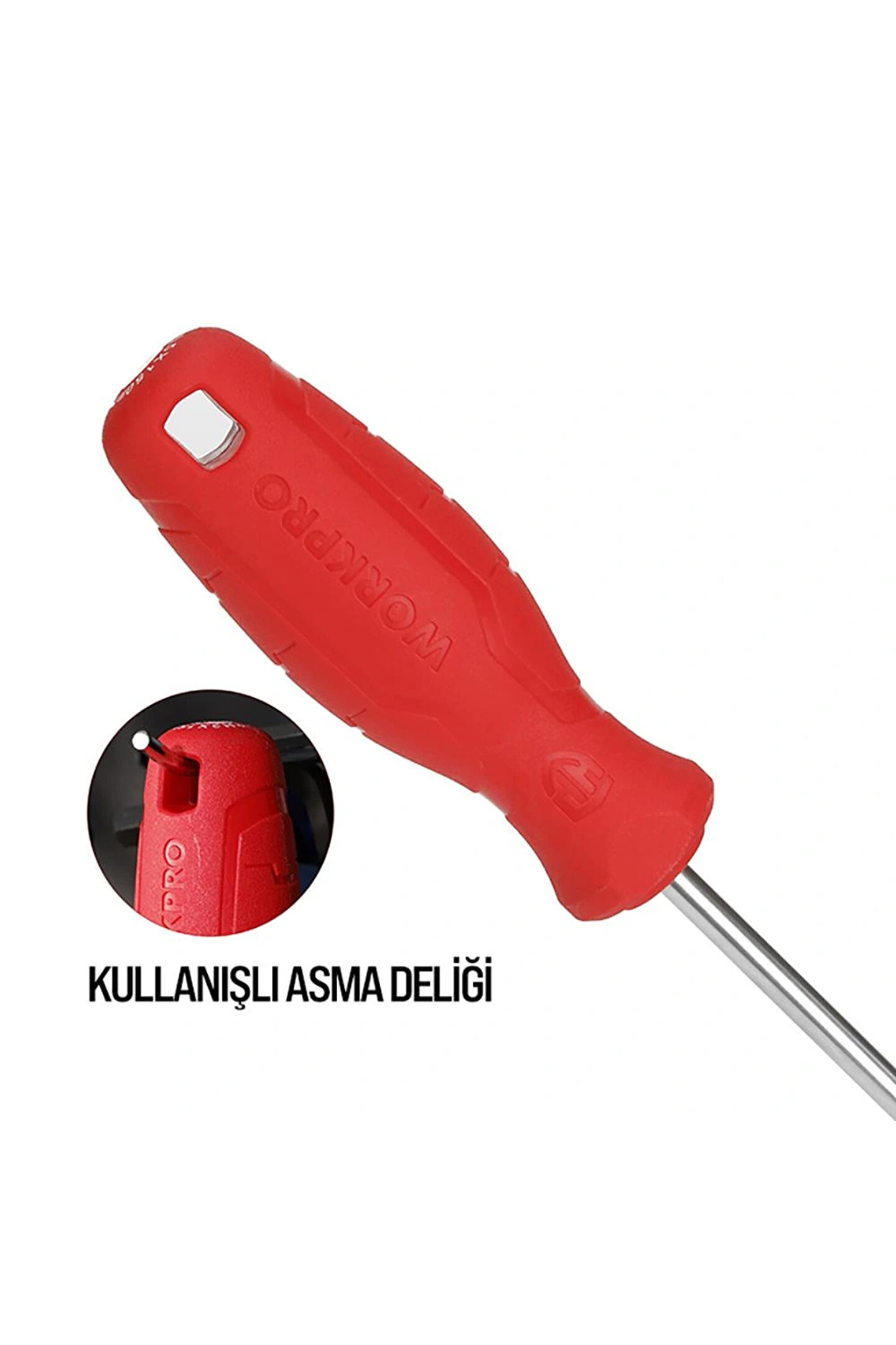 • WORKPRO WP200500 2 Parça Yıldız/Düz CR-V Manyetik Profesyonel Tornavida Seti • Mekanik veya elektrikli aletlerin bakım ve onarımında, profesyonel olarak kullanılabilmesi için paslanmaya ve aşınmaya dayanıklı Manyetik Krom Vanadyum vidalama uçlarına sahiptir.; • 1 Adet SL6.5x150mm DÜZ ve 1 Adet PH2x150mm YILDIZ Tornavidadan oluşan 2’li tornavida seti.; • Geliştirilmiş dayanıklılık, paslanma direnci ve korozyon önleyici özellik için ısıl işlem görmüş CR-V çelikten yapılmış 2 Parça Tornavida Seti.; • Geliştirilmiş güçlü, siyah manyetik uçlara sahip 2 Parçalı Tornavida Seti, dayanıklılık ve rahat kavrama sağlar.; • Tornavida setinin güçlü manyetik ucu, baş aşağı durumlarda bile vidanızı tutar.; Daha iyi kontrol sağlar.; • Rahat kullanım için ANTI-SLIP kaymayan, kolay kavranan tutma sapı sayesinde konforlu kullanım imkânı.; • Üst düzey ANTI-SLIP sap tasarımı kaymayı önler, el yorgunluğunu azaltır.; • Yüksek kaliteli CR-V çelik kullanılmıştır, hassas ve ısıl işlemden sonra vidalama uçları daha sert ve dayanıklı hale getirilmiştir.; • İÇERİK: 1 Adet SL6.5x150mm DÜZ, 1 Adet PH2x150mm YILDIZ Tornavida.