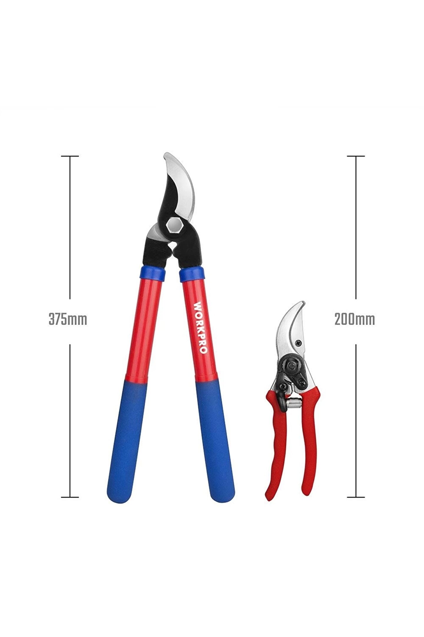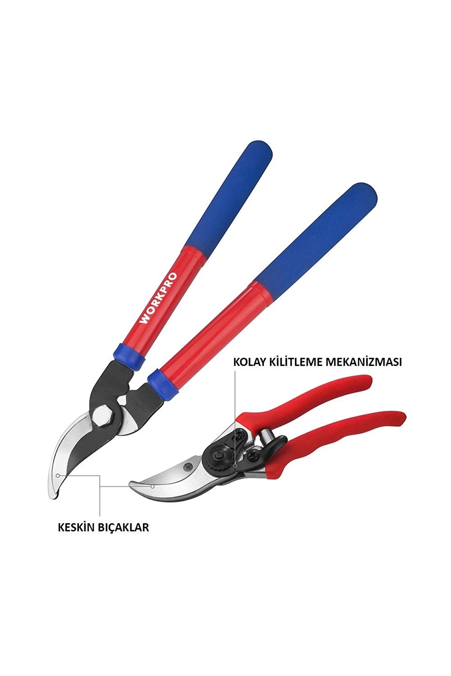 • WORKPRO WP204500 2’li Profesyonel Bağ Bahçe Dal Budama Makası Seti • Maksimum 200mm ve 380mm iki ayrı budama makasından oluşan S50C Yüksek dayanımlı karbon alaşımlı paslanmaz çelik bıçaklardan oluşan 2 parça setten oluşmaktadır.; • Üzüm bağı, meyve ağacı, genel ağaç dalı, sert dallara sahip çiçekler ve peyzaj düzenlemelerinde uzun ömürlü kullanılabilmesi için paslanma ve aşınmaya karşı dayanıklı paslanmaz çelik bıçak ve gövdeden üretilmiştir.; • Büyük makas kalın ve orta boy dalların budanmasında 380mm’lik geniş tutma kolları ve maksimum 38mm’e kadar ağız açıklığı ile maksimum 15mm’e kadar kalın dalların budanmasında üstün sağlar.; • Küçük makas ince dalların budanmasında 200mm’lik avuç içi tutma kolları ve 30mm’e kadar ağız açıklığı ile maksimum 10mm’e kadar ince dalların budanmasında profesyonel kullanım imkânı sağlar.; • Avuç içini terletmeyen kauçuk kaplı tutma sapları sayesinde uzun süreli çalışmalarda avuç içine zarar vermez el ve bilek sağlığınızı korumanızı sağlar.; • Bıçak kilit mekanizması ile güvenli taşıma ve muhafaza edilmesini sağlar.; • WORKPRO, Amerika Birleşik Devletleri menşeli profesyonel bir El Aleti markası olup 1992 yılında kurulmuştur.; • WORKPRO, Dünyanın en büyük El Aleti üreticisidir ve Mekanik El Aletleri alanında dünya çapında 21 üretim üssüne sahiptir.; • WORKPRO, Dünya genelinde 5 AR-GE üssü ve inovasyon teknoloji merkezleri sayesinde, her yıl 400'den fazla yeni ürün geliştirmektedir.; Sektöründe 700'den fazla uluslararası patentin de sahibidir.; • WORKPRO, Sadece profesyonel değil, aynı zamanda Rekabetçi Fiyat, Yüksek Kalite ve Geniş Ürün Çeşidiyle Dünya çapında 100’den fazla ülkede hizmet vermektedir.