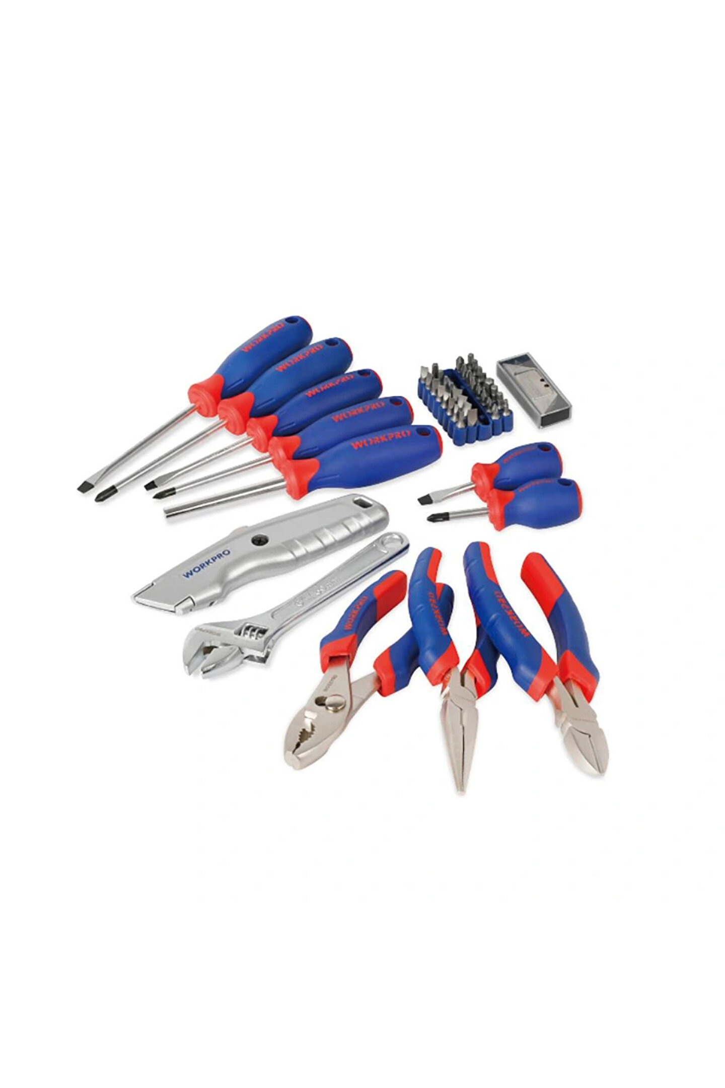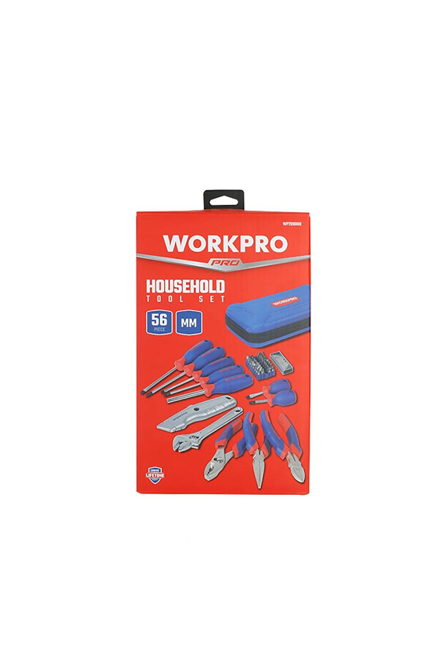 • WORKPRO WP209008 56 Parça Profesyonel Tamir/Bakım Alet Seti • Mobilya montajında, genel tamirat ve tadilat işleri ile mekanik veya elektrikli aletlerin bakım ve onarımında kullanılabilmesi için paslanmaya ve aşınmaya dayanıklı Krom kaplamaya sahiptir.; • Tornavida, Pense, Yan Keski, Kargaburnu, Ayarlı Anahtar, Maket Bıçağı, Maket Bıçağı Yedeği, Bits Vidalama Uçları içeren genel maksatlı tamir, montaj bakım setinden oluşmaktadır.; • Tornavida ve pense uçları yüksek tork mukavemetli modifiye edilmiş Manyetik Cr-V çelikten üretilmiştir.; • Cr-V alaşım, pas ve korozyon gibi dış etkenlerden koruyarak uzun ömürlü yapı kazandırır.; • Vidalama yaparken sürtünmeyi en aza indirerek vidaların daha iyi kavranmasını sağlar, bu sayede vida yuvalarına zarar vermez.; • Geliştirilmiş güçlü, siyah manyetik uca sahip tornavida, yüksek dayanıklılık ve rahat kavrama sağlar.; • Güçlü manyetik ucu, baş aşağı durumlarda bile vidanızı tutar.; Daha iyi kontrol sağlar.; • Rahat kullanım için kaymayan, kolay kavranan tutma sapı sayesinde konforlu kullanım imkânı.; • Üst düzey kauçuk kaplama sap tasarımı kaymayı önler, el yorgunluğunu azaltır.; • Taşıma çantası ile alet ve aksesuarları temiz ve güvenli bir şekilde saklama.; • İÇERİK: • 1 Adet 160mm Amerikan Tipi Ayarlı Pense • 1 Adet 160mm Kargaburnu • 1 Adet 160mm Yan keski • 1 Adet 160mm Kurbağacık Anahtar • 3 Adet = SL6x38mm / SL5x75mm / SL6x100mm • 3 Adet = PH2x38mm / PH1x75mm / PH2x100mm • 1 Adet Bits Uç Tutucu Tornavida • 1 Adet 50mm Bits Uç Tutucu • 11 Adet= 2xSL3 / 2xSL4 / 2xSL5 / 2xSL5.5 / 2xSL6 / SL7 25mm Bits • 8 Adet = 2xPH0 / 2xPH1 / 3xPH2 / PH3 25mm Bits • 4 Adet = PZ0 / PZ1 / PZ2 / PZ3 25mm Bits • 4 Adet = T10 / T15 / T20 / T25 25mm Bits • 4 Adet = H3 / H4 / H5 / H6 25mm Bits • 1 Adet = ¼” 25mm Lokma Adaptör Bits Uç • 1 Adet Alüminyum Rötuş Maket Bıçağı • 10 Adet Rötuş Maket Bıçağı Yedeği • 1 Adet Bez Taşıma Çantası