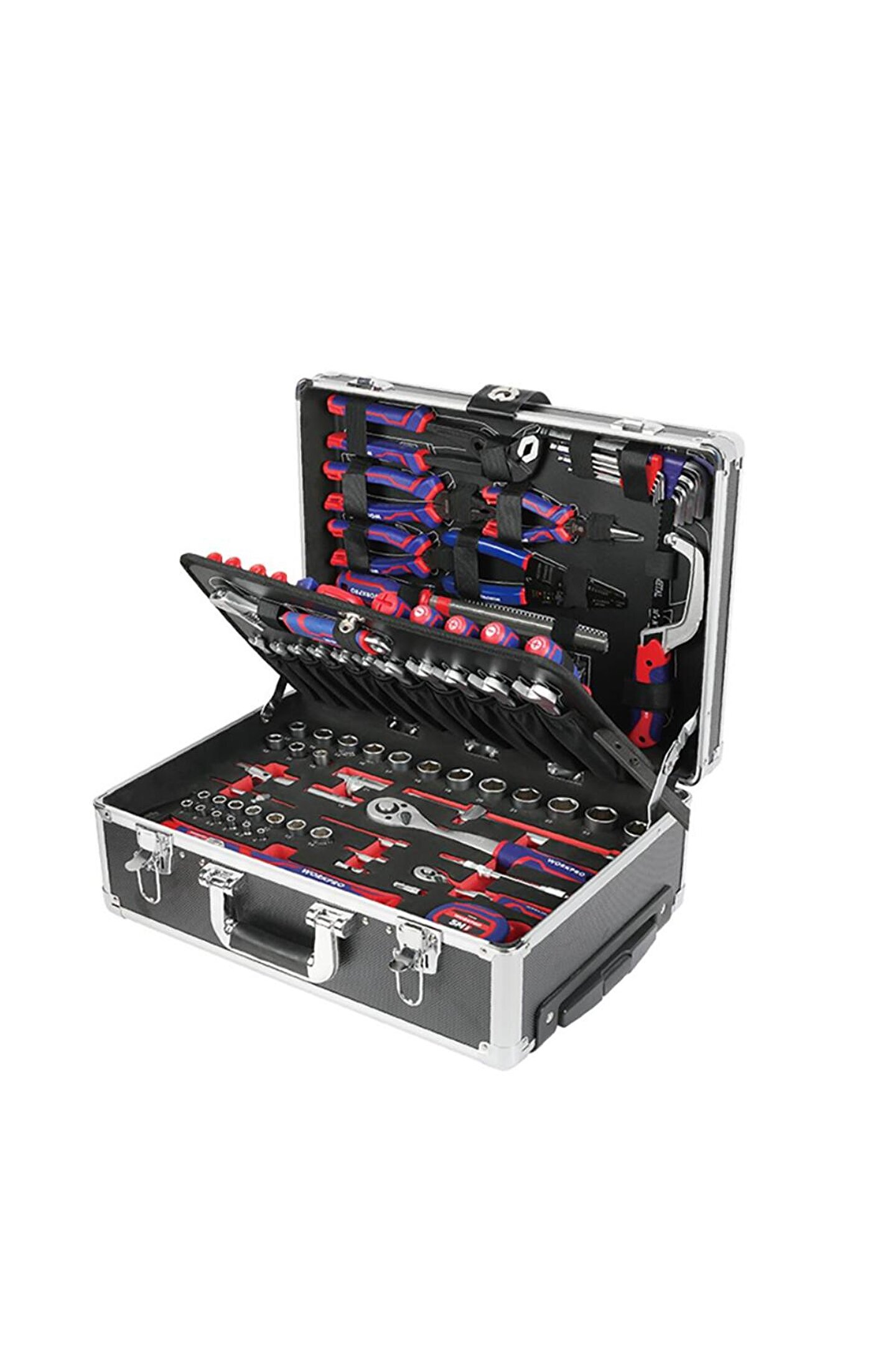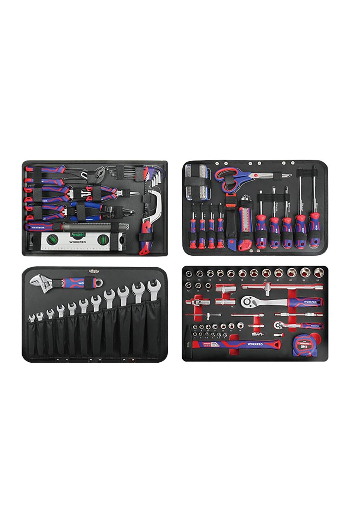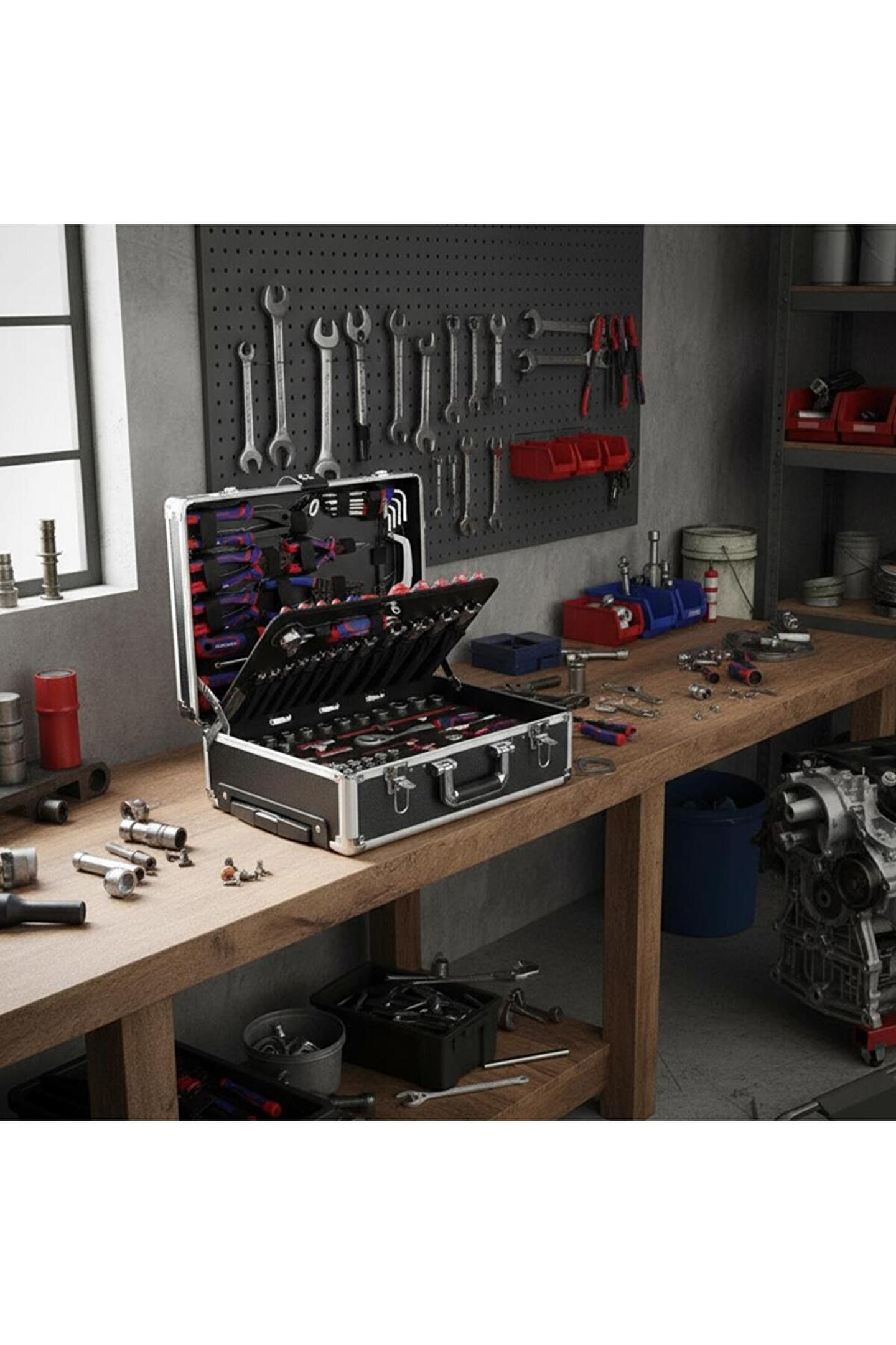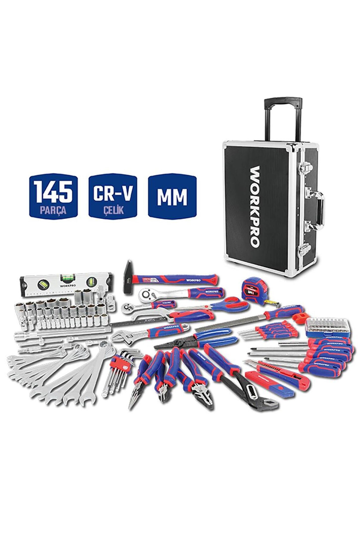 • WORKPRO WP209089 145 Parça CR-V Profesyonel El Aleti Tamir Seti Tamir Bakım Çantası • Mobilya montajında, genel tamirat ve tadilat işleri ile mekanik veya elektrikli aletlerin bakım ve onarımında profesyonel olarak kullanılabilmesi için paslanmaya ve aşınmaya dayanıklı CR-V kaplamaya sahiptir.; • Hassas ve Normal Tornavida setleri, Kargaburnu, Ayarlı Anahtar, Çekiç, Metre, Allen Anahtar Takımı, Lokma Uçları, Kombine anahtar takımı, Su terazisi, Demir Testere, Bits Vidalama Uçları, Maket Bıçağı, Makas, Eğe, Fort pense, Kablo Sıyırma/Sıkma Pensesi ve tüm bu aletlerin yerleştirilip taşınacağı teleskobik saplı tekerlekli Alüminyum takım çantasından oluşan genel maksatlı profesyonel tamir, bakım ve montaj setidir.; • Cr-V alaşım, pas ve korozyon gibi dış etkenlerden koruyarak uzun ömürlü yapı kazandırır.; • Toplam 40 Parçalı ½” ve ¼” Cr-V Lokma seti ile profesyonel kullanım imkânı.; • Alüminyum kilitlenebilir profesyonel taşıma çantası ile alet ve aksesuarları temiz, düzenli ve güvenli bir şekilde saklamanızı sağlar.; • İÇERİK: • 1 Adet 160mm Kargaburnu • 1 Adet 160mm Yan keski • 1 Adet 200mm Pense • 1 Adet 250mm Fort Pense • 1 Adet 200mm Kablo Sıyırma/Sıkma Pensesi • 1 Adet 300gr.; Fiberglas Saplı Çekiç • 4 Adet (SL5.5x100mm, SL6.5x150mm, PH1x100mm, PH2x150mm Tornavida Takımı) • 4 Adet (PH00x50mm, PH0x50mm, SL2.0x50mm, SL3.0x50mm Hassas Tornavida Takımı) • 1 Adet Bits Uç Tutucu Tornavida • 11Adet (8,9,10,11,12,13,14,16,17,18,19mm Kombine Anahtar Seti) • 1 Adet ¼” Cırcır Lokma Kolu • 1 Adet ½” Cırcır Lokma Kolu • 1 Adet ¼” Mafsal • 1 Adet ½” Mafsal • 13 Adet (4, 4.5, 5, 5.5, 6, 7, 8, 9, 10, 11, 12, 13, 14mm ¼” Lokma Seti) • 15 Adet (10, 11, 12, 13, 14, 15, 16, 17, 18, 19, 20, 21, 22, 23, 24mm ½” Lokma Seti) • 2 Adet 16, 21mm ½” Lokma • 1 Adet 3/8” ü ½” Dönüştürücü Lokma Adaptör • 1 Adet ¼” 110mm T Kol • 2 Adet ¼” 50mm, 150mm Lokma Uzatma Şaftı • 1 Adet ½” 250mm Lokma Uzatma Şaftı • 1 Adet ¼” 150mm Esnek Spiral Uzatma Şaftı • 1 Adet ¼” 110mm T Kol • 1 Adet ¼” Bits Uç Tutucu Lokma • 9 Adet (1.5, 2, 2.5, 3, 4, 5, 6, 8, 10mm Cr-V Metrik Allen Anahtar Takımı • 50 Adet (SL3, 3xSL4, 5xSL5, 3xSL6, SL7, PH0, 2xPH1, 2xPH2, PH3, PZ0, 3xPZ1, 3xPZ2, 2xPZ3, T7, T8, T9, T10, T15, T20, T25, T27, T30, T40, H2, H2.5, 2xH3, 2xH4, 2xH5, H6, S0, S1, S2, S3 Bits Vidalama Uç Seti) • 1 Adet 300mm Alüminyum Torpedo Su Terazisi • 1 Adet 250mm Demir Testere • 1 Adet 200mm Eğe • 1 Adet 200mm Kurbağacık Anahtar • 1 Adet Şerit Metre (5m) • 1 Adet 18mm Maket Bıçağı / 10x 18mm Maket Bıçağı Yedeği • 1 Adet 215mm Makas • 1 Adet Magnetize/Demagnetize Manyetizma • 1 Adet Profesyonel Tutma kollu Tekerlekli Alüminyum Alet Takım Çantası