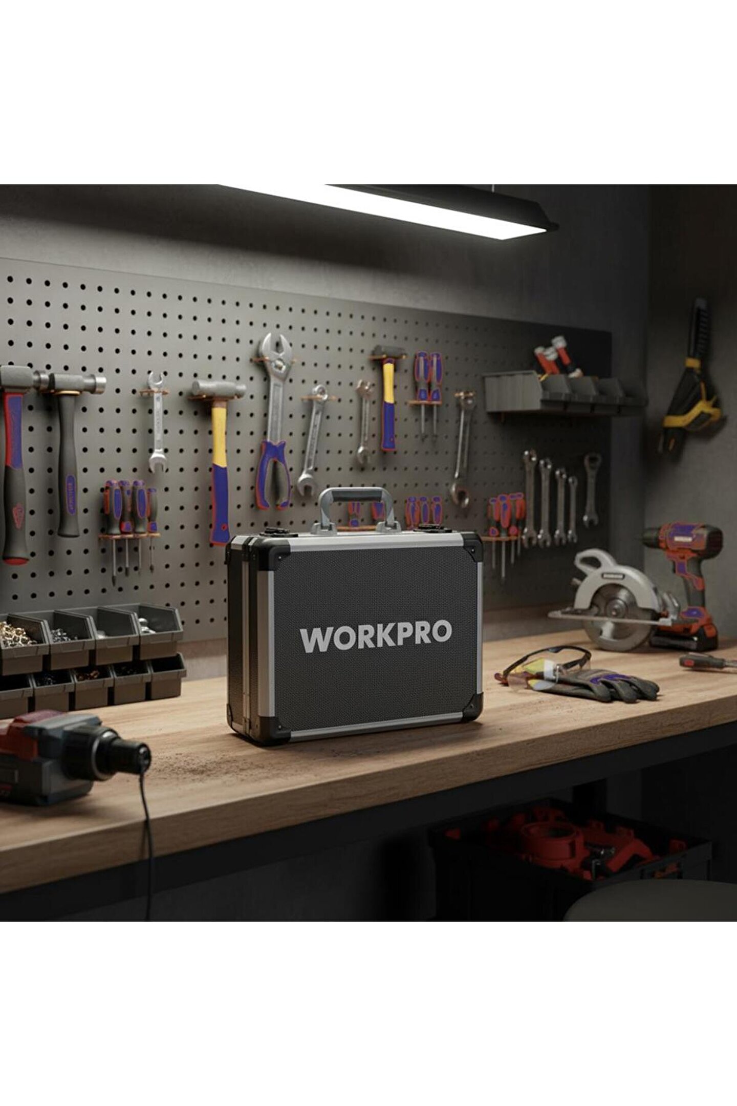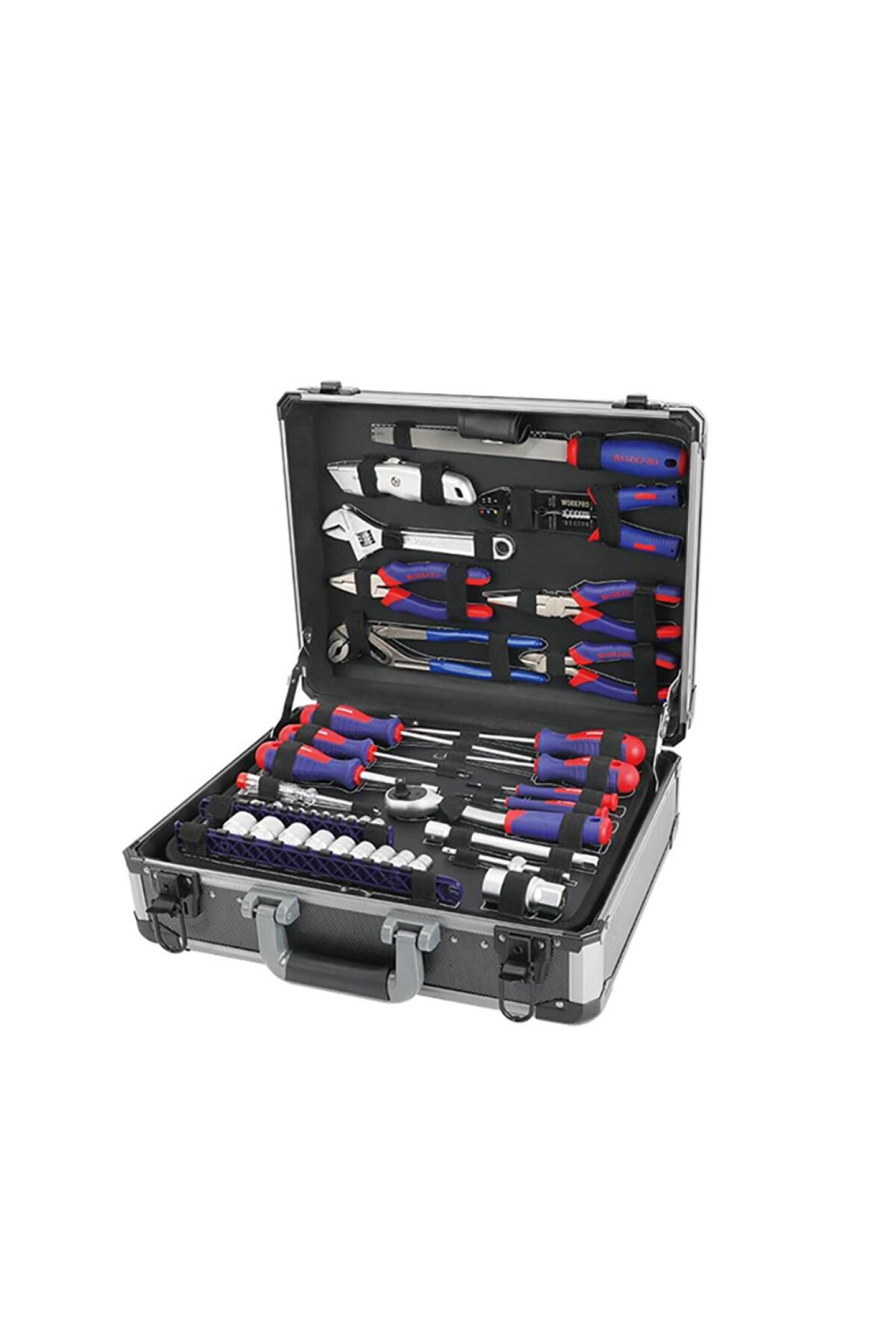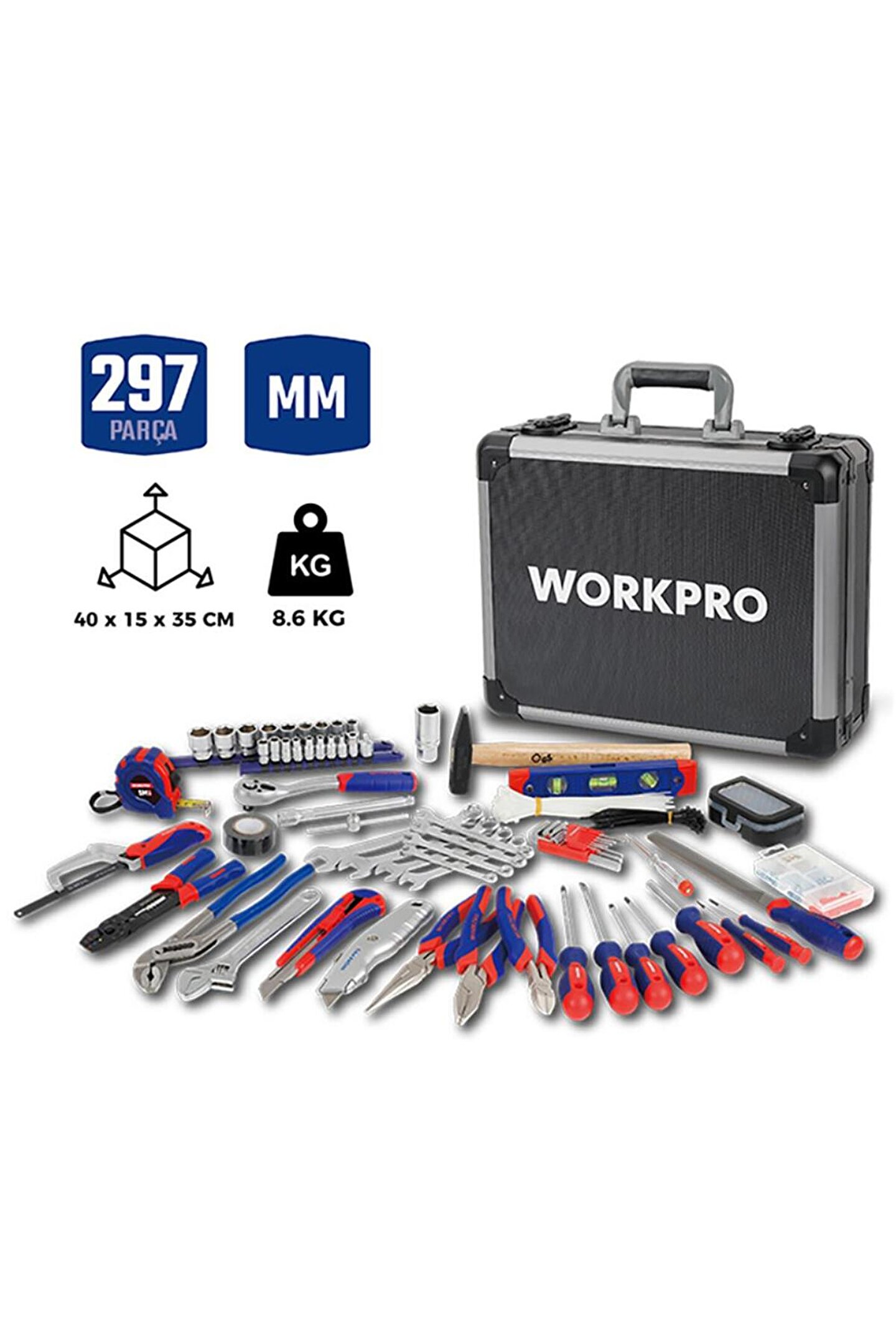 • WORKPRO WP209100 297 Parça CR-V Profesyonel El Aleti Tamir Seti Tamir Bakım Çantası • Mobilya montajında, genel tamirat ve tadilat işleri ile mekanik veya elektrikli aletlerin bakım ve onarımında profesyonel olarak kullanılabilmesi için paslanmaya ve aşınmaya dayanıklı CR-V kaplamaya sahiptir.; • Hassas Tornavida, Kargaburnu, Ayarlı Anahtar, Çekiç, Metre, Allen Anahtar Takımı, Lokma Uçları, Kombine anahtar takımı, Su terazisi, Demir Testere, Bits Vidalama Uçları, Maket Bıçağı, Kablo Bağı, Eğe, Fort pense, Kablo Sıyırma/Sıkma Pensesi ve bu aletlerin yerleştirilip taşınacağı Alüminyum takım çantasından oluşan genel maksatlı profesyonel tamir, bakım ve montaj setidir.; • Cr-V alaşım, pas ve korozyon gibi dış etkenlerden koruyarak uzun ömürlü yapı kazandırır.; • Toplam 22 Parçalı 3/8” ve ¼” Cr-V Lokma seti ile profesyonel kullanım imkânı.; • Alüminyum kilitlenebilir profesyonel taşıma çantası alet ve aksesuarları temiz, düzenli ve güvenli bir şekilde saklamanızı/ taşımanızı sağlar.; • İÇERİK: • 1 Adet 200mm Kargaburun • 1 Adet 160mm Yankeski • 1 Adet 180mm Pense • 1 Adet 250mm Fort Pense • 1 Adet 200mm Kablo Sıyırma/Sıkma Pensesi • 1 Adet 300gr.; Ahşap Saplı Çekiç • 6 Adet (SL6x150mm, SL5x150mm, PH1x100mm, PH2x150mm, SL1,5x50mm, PH0x50mm Tornavida Takımı) • 1 Adet 150mm Kontrol Kalemi • 1 Adet Bits Uç Tutucu Tornavida • 8 Adet (8,10,11,12,13,14,17,19mm Kombine Anahtar Seti) • 1 Adet 3/8” Cırcır Lokma Kolu • 8 Adet (4, 4.5, 5, 5.5, 6, 7, 8, 9mm ¼” Lokma Seti) • 9 Adet (10, 11, 12, 13, 14, 15, 17, 18, 19mm 3/8” Lokma Seti) • 1 Adet 21mm 3/8” Lokma • 1 Adet 3/8” ü ¼” Dönüştürücü Lokma Adaptör • 1 Adet ¼” 110mm T Kol • 1 Adet 3/8” 150mm Lokma Uzatma Şaftı • 1 Adet ¼” Bits Uç Tutucu Lokma • 9 Adet (1.5, 2, 2.5, 3, 4, 5, 6, 8, 10mm Cr-V Metrik Allen Anahtar Takımı • 30 Adet ( SL3, SL4, 2xSL5, 4xSL6, 2xSL7, PH0, 2xPH1, 3xPH2, PH3, PZ0, 2xPZ1, 3xPZ2, 2xPZ3, T10, T15, T20, T25, T30 Bits Vidalama Uç Seti) • 1 Adet 60mm Bits Uzatma Ucu • 1 Adet 225mm Torpedo Su Terazisi • 1 Adet 250mm Demir Testere • 1 Adet 200mm Eğe • 1 Adet 200mm Kurbağacık Anahtar • 1 Adet Şerit Metre (5m) • 1 Adet Rötuş Maket Bıçağı • 1 Adet 18mm Maket Bıçağı / 3x Maket Bıçağı Yedeği • 1 Adet Elektrik İzole Bantı • 60 Adet 3.6x200mm Kablo Bağı • 40 Adet 2.5x120mm Kablo Bağı • 1 Adet (100 Parça Çivi, Vida, Dübel, Açık Piton, Kanca Seti) • 1 Adet Profesyonel Alüminyum Alet Takım Çantası
