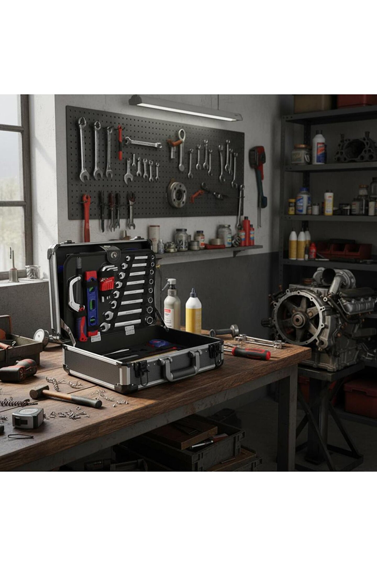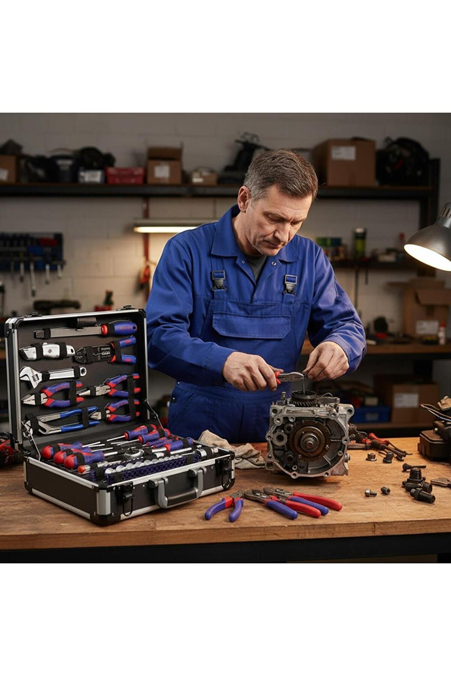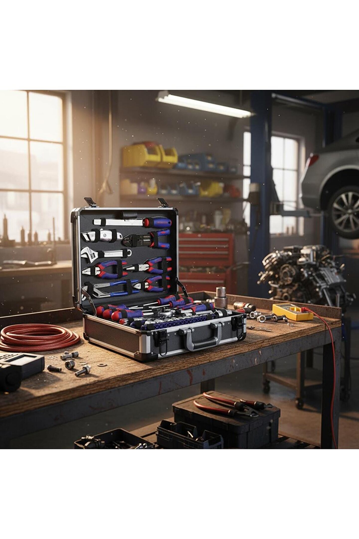 • WORKPRO WP209100 297 Parça CR-V Profesyonel El Aleti Tamir Seti Tamir Bakım Çantası • Mobilya montajında, genel tamirat ve tadilat işleri ile mekanik veya elektrikli aletlerin bakım ve onarımında profesyonel olarak kullanılabilmesi için paslanmaya ve aşınmaya dayanıklı CR-V kaplamaya sahiptir.; • Hassas Tornavida, Kargaburnu, Ayarlı Anahtar, Çekiç, Metre, Allen Anahtar Takımı, Lokma Uçları, Kombine anahtar takımı, Su terazisi, Demir Testere, Bits Vidalama Uçları, Maket Bıçağı, Kablo Bağı, Eğe, Fort pense, Kablo Sıyırma/Sıkma Pensesi ve bu aletlerin yerleştirilip taşınacağı Alüminyum takım çantasından oluşan genel maksatlı profesyonel tamir, bakım ve montaj setidir.; • Cr-V alaşım, pas ve korozyon gibi dış etkenlerden koruyarak uzun ömürlü yapı kazandırır.; • Toplam 22 Parçalı 3/8” ve ¼” Cr-V Lokma seti ile profesyonel kullanım imkânı.; • Alüminyum kilitlenebilir profesyonel taşıma çantası alet ve aksesuarları temiz, düzenli ve güvenli bir şekilde saklamanızı/ taşımanızı sağlar.; • İÇERİK: • 1 Adet 200mm Kargaburun • 1 Adet 160mm Yankeski • 1 Adet 180mm Pense • 1 Adet 250mm Fort Pense • 1 Adet 200mm Kablo Sıyırma/Sıkma Pensesi • 1 Adet 300gr.; Ahşap Saplı Çekiç • 6 Adet (SL6x150mm, SL5x150mm, PH1x100mm, PH2x150mm, SL1,5x50mm, PH0x50mm Tornavida Takımı) • 1 Adet 150mm Kontrol Kalemi • 1 Adet Bits Uç Tutucu Tornavida • 8 Adet (8,10,11,12,13,14,17,19mm Kombine Anahtar Seti) • 1 Adet 3/8” Cırcır Lokma Kolu • 8 Adet (4, 4.5, 5, 5.5, 6, 7, 8, 9mm ¼” Lokma Seti) • 9 Adet (10, 11, 12, 13, 14, 15, 17, 18, 19mm 3/8” Lokma Seti) • 1 Adet 21mm 3/8” Lokma • 1 Adet 3/8” ü ¼” Dönüştürücü Lokma Adaptör • 1 Adet ¼” 110mm T Kol • 1 Adet 3/8” 150mm Lokma Uzatma Şaftı • 1 Adet ¼” Bits Uç Tutucu Lokma • 9 Adet (1.5, 2, 2.5, 3, 4, 5, 6, 8, 10mm Cr-V Metrik Allen Anahtar Takımı • 30 Adet ( SL3, SL4, 2xSL5, 4xSL6, 2xSL7, PH0, 2xPH1, 3xPH2, PH3, PZ0, 2xPZ1, 3xPZ2, 2xPZ3, T10, T15, T20, T25, T30 Bits Vidalama Uç Seti) • 1 Adet 60mm Bits Uzatma Ucu • 1 Adet 225mm Torpedo Su Terazisi • 1 Adet 250mm Demir Testere • 1 Adet 200mm Eğe • 1 Adet 200mm Kurbağacık Anahtar • 1 Adet Şerit Metre (5m) • 1 Adet Rötuş Maket Bıçağı • 1 Adet 18mm Maket Bıçağı / 3x Maket Bıçağı Yedeği • 1 Adet Elektrik İzole Bantı • 60 Adet 3.6x200mm Kablo Bağı • 40 Adet 2.5x120mm Kablo Bağı • 1 Adet (100 Parça Çivi, Vida, Dübel, Açık Piton, Kanca Seti) • 1 Adet Profesyonel Alüminyum Alet Takım Çantası