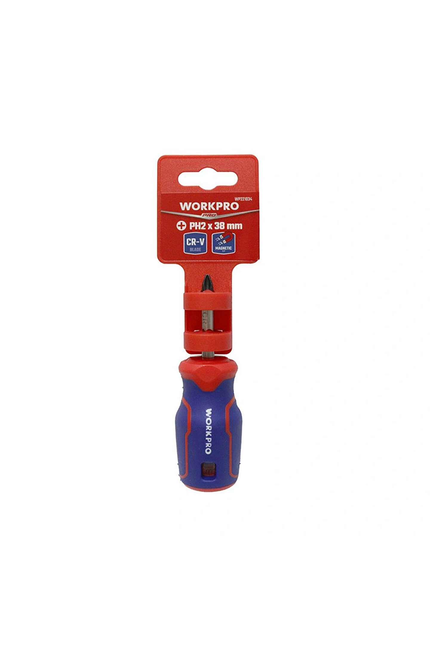 • WORKPRO WP221034 PH2x38mm CR-V Manyetik Profesyonel Yıldız Topaç Tornavida • Mekanik veya elektrikli aletlerin bakım ve onarımında, profesyonel olarak kullanılabilmesi için paslanmaya ve aşınmaya dayanıklı Manyetik Krom Vanadyum vidalama uca sahiptir.; • Geliştirilmiş dayanıklılık, paslanma direnci ve korozyon önleyici özellik için ısıl işlem görmüş CR-V çelikten yapılmış PH2 x 38mm Topaç Yıldız tornavida.; • Geliştirilmiş güçlü, siyah manyetik uca sahip topaç tornavida, yüksek dayanıklılık ve rahat kavrama sağlar.; • Güçlü manyetik ucu, baş aşağı durumlarda bile vidanızı tutar.; Daha iyi kontrol sağlar.; • Rahat kullanım için kaymayan, kolay kavranan topaç şeklinde tutma sapı sayesinde konforlu kullanım imkânı.; • Üst düzey kauçuk kaplama sap tasarımı kaymayı önler, el yorgunluğunu azaltır.; • Yüksek kaliteli CR-V çelik kullanılmıştır, hassas ve ısıl işlemden sonra vidalama ucu daha sert ve dayanıklı hale getirilmiştir.