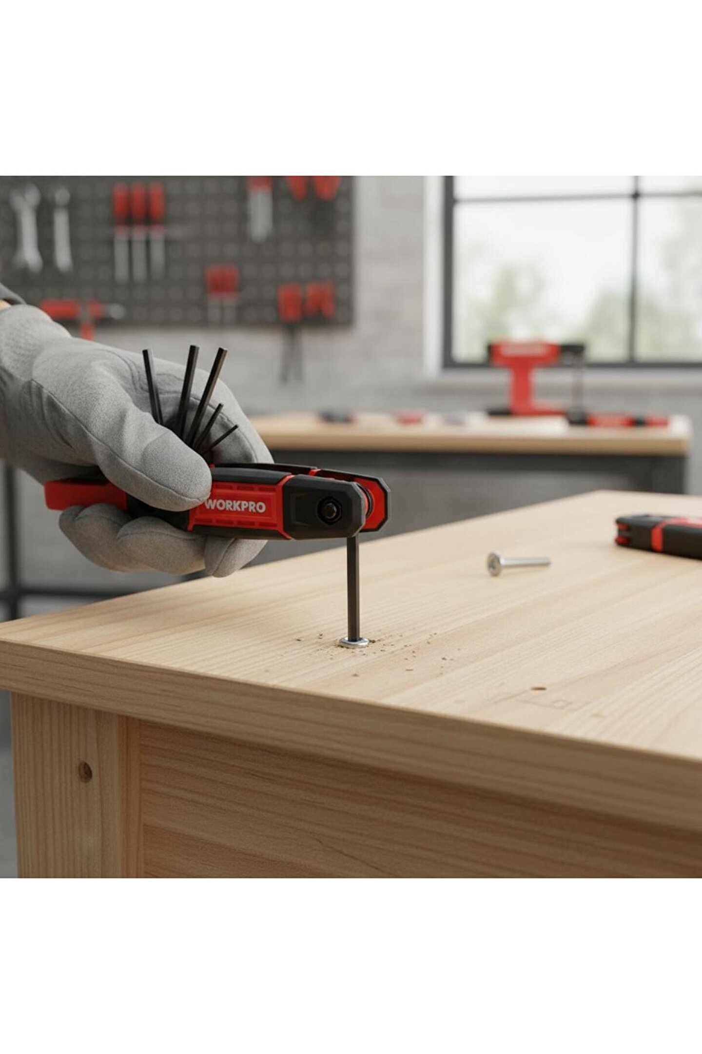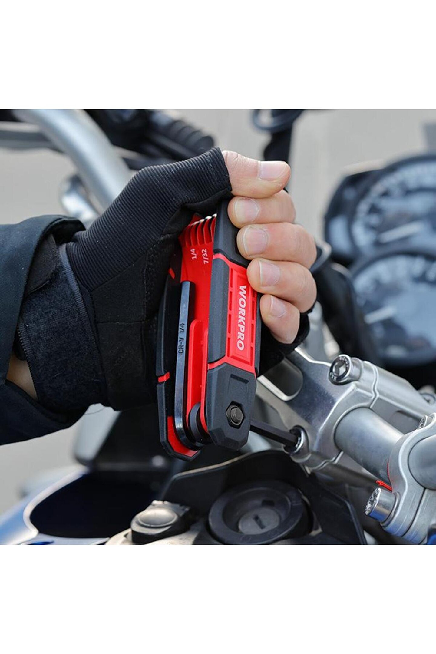 • WORKPRO WP222029 9 Parça CR-V İnç Çakı Tipi Profesyonel Allen Anahtar Takımı • Genel tamirat ve tadilat işleri ile her türlü mekanik veya elektrikli aletlerin bakım ve onarımında profesyonel olarak kullanılabilmesi için paslanmaya ve aşınmaya dayanıklı Krom kaplamaya sahiptir.; • Geliştirilmiş dayanıklılık, paslanma direnci ve korozyon önleyici özellik için ısıl işlem görmüş CR-V çelikten yapılmış 9 Parçalı Çakı tipi Allen anahtar setidir.; • Yüksek kaliteli CR-V çelikten üretilmiştir, hassas ve ısıl işlemden sonra Allen uçları daha sert ve dayanıklı hale getirilmiştir.; • Kısa boy Çelik CR-V şaft sayesinde kolay kullanım imkânı.; • Kaymaz siyah toz boya kaplama sayesinde rahat tutuş sağlar.; Uzun ömürlü paslanmaz yapı kazandırır.; • Çakı şeklinde içe katlanabilir tasarım ile Allen anahtarları kaybolmadan düzenli olarak muhafaza etmenizi ve kullanmanızı sağlar.; • İÇERİK: • 5/64, 3/32, 7/64, 1/8, 9/64, 5/32, 3/16, 7/32, 1/4 İNC Allen Anahtar Seti