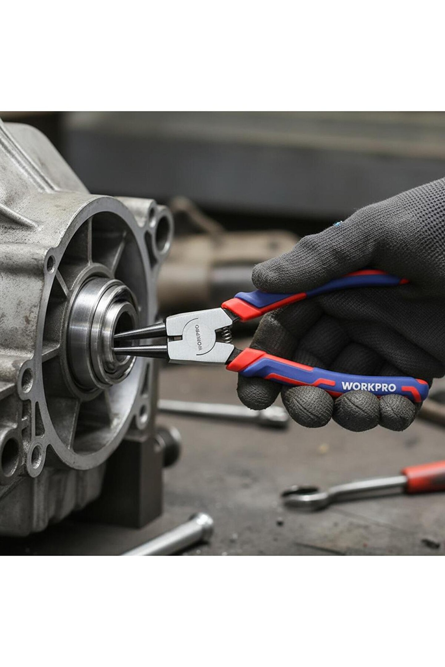 • WORKPRO WP231150 180MM Cr-V Düz Yaylı Profesyonel Dış Segman Pensesi • Sanayi, Otomotiv, Şantiye, gibi mekanik aletlerin sabitlenmesinde kullanılan Segmanların sökülüp, takılmasında, bakım ve onarımlarında profesyonel ve uzun ömürlü kullanım için aşınmaya ve paslanmaya dayanıklı Cr-V dövme çelik malzemeden üretilmiştir.; • Yüksek kaliteli Cr-V dövme çelik kullanılmıştır, hassas ve ısıl işlemden sonra kesme ve segman kavrama dişleri daha sert ve dayanıklı hale getirilmiştir.; • Cr-V alaşım, pas ve korozyon gibi dış etkenlerden koruyarak uzun ömürlü yapı kazandırır.; • %30 daha geniş Üst düzey kauçuk kaplama sap tasarımı kaymayı önler, el yorgunluğunu azaltır.