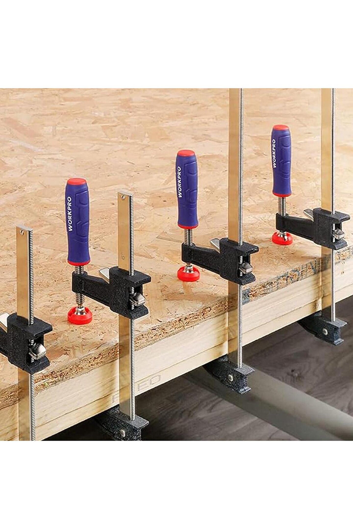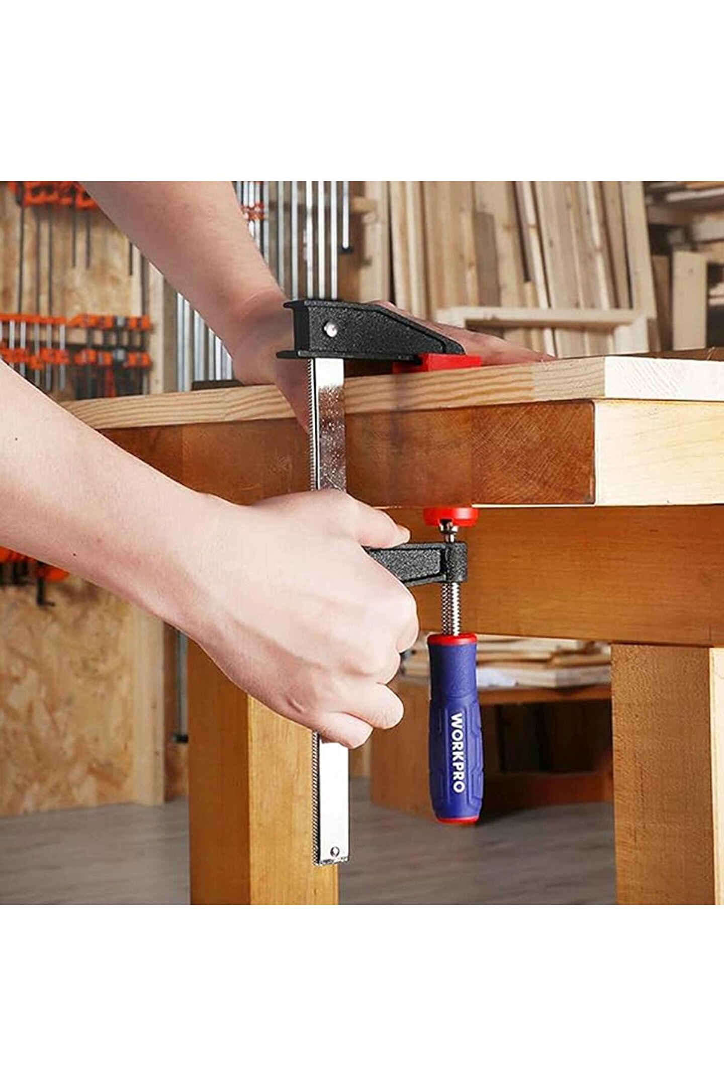 • WORKPRO WP232032 45cm Döküm Profesyonel Marangoz İşkence • Marangoz hanelerde, demir doğrama atölyelerinde vb.; üretim alanlarında metal, ahşap veya plastik parçaların geçici sabitleme ve birleştirme işlemlerinde, her türlü farklı parçaların birleşim noktalarından yapıştırıcı tutkal veya kaynak ile sabitlenmesinde, işkence vazifesi görebilmesi için dayanıklı çelik tırtıklı ray sistemi ve paslanmaya karşı PVC kaplı döküm çeneleri sayesinde uzun ömürlü ve profesyonel kullanım imkânı sunar.; • Sıkıştırma çenelerine entegre çıkarılabilir PVC kaplama sayesinde malzeme yüzeyine zarar vermez, yüzeyi tam kavramasını sağlar, çizilmeleri engeller ve iz bırakmaz.; • Hızlı serbest açılıp, hızlı kapanmasını sağlayan yaylı çelik mil sayesinde hızlı bir şekilde ayarlama yapılarak vidalı kol ile sabitlenmesini sağlar.; • Sıkıştırma vidasına entegre oynar başlı PVC kaplı metal ped sayesinde tüm yüzeylere eşit baskı uygular.; Malzeme yüzeyine zarar vermez.; • 45cm uzunluk, 7,5cm derinlik