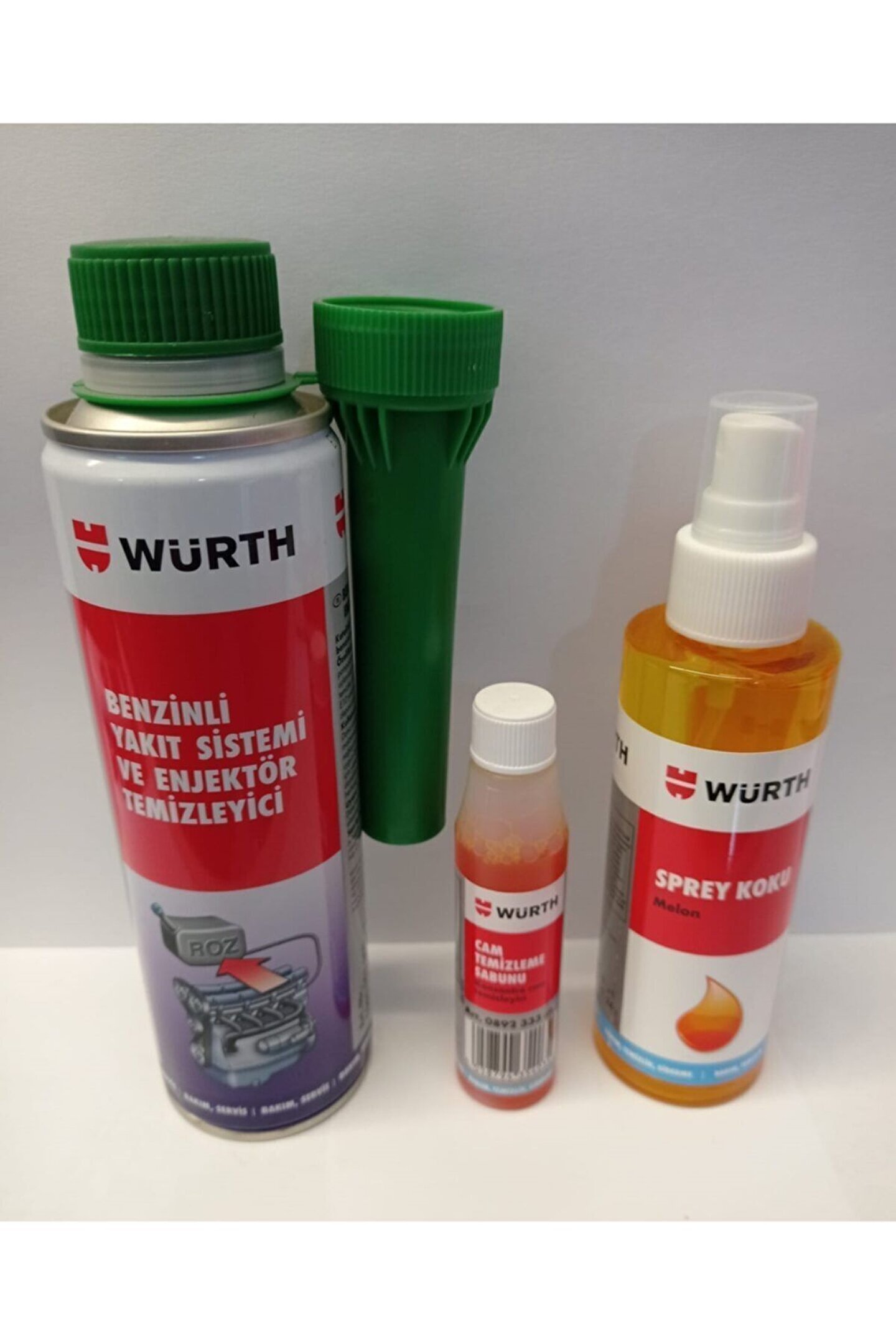 Orijinal Würth Benzin Enjektör Katkısı + Würth Cam Temizleme Sabunu + Würth Otomobil Kokusu Melon
