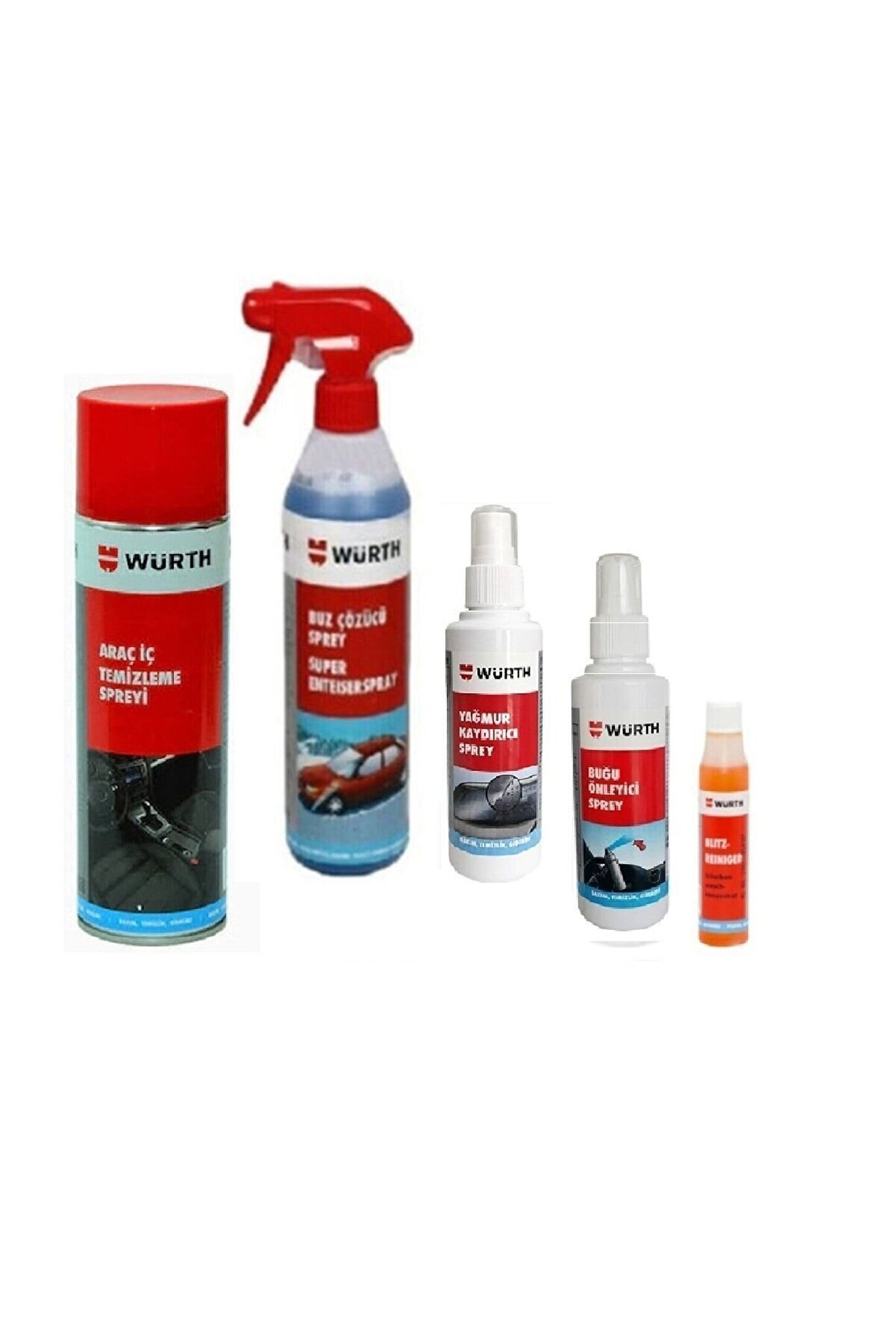 Würth Buz Çözücü Sprey 500 Ml. ; Geri Bildirim Ver Buzu ve kırağıyı hızlı ve etkili bir şekilde giderir Ağır bir şekilde buzlanmış camlar bile buz ve kırağıdan hızlı ve etkili bir şekilde temizlenir Çaba gerektiren kazıma işlemine gerek kalmaz Az zaman gerekir Camların tekrar buzlanmasını engeller Araç iç kısmı çalışma sıcaklığına erişmese bile açık bir görüntü sağlanır Mükemmel malzeme uyumluluğu Boyalara, kauçuklara ve plastiklere zarar vermez Metanol içermez hoş limon kokusu Uygulama: Buzlanmış camlara yukarıdan aşağıya doğru püskürtün ve kısa bir süre etki göstermesini bekleyin Eriyen buzu bir buz kazıyıcı ile temizleyin Würth Yağmur Kaydırıcı Buğu Önleyici WürthBuğu önleyici 150ML Araç camlarında, aynalarda ve gözlük camlarında buğulanmayı önleyen sprey Net görüş sağlarAraçlarda buğulanmayı önleyerek görüş kalitesini ve sürüş güvenliğini arttırır. ; Uzun sürekli korumaUygulanan yüzeylerde uygulamaya bağlı olarak 1 haftaya kadar buğulanmayı önler Maske takan gözlük kullanıcıları için ideal üründür Würth Yağmur Kaydırıcı Sprey Cam Su Itici Kaydırıcı 150 ml Würth yağmur kaydırıcı sprey 150 ml Özellikleri: Içerik: 150 ml. ; Tüm araç camlarında, duşakabinlerde ve tekne camlarında kullanıma uygun yağmur kaydırıcı sprey. ; 80 km/h ve üzeri hızlarda yağmur damlalarının cama tutunmasını önler, rüzgarla kaymasını sağlar. ; Kirlerin, damlaların tutunmasını önleyerek net bir görüş sağlar ve sürüş güvenliğini arttırır. ; Uzun süre etkili: Ön işlem ve kullanım şekline bağlı olarak 4- 6 hafta kadar etki süresi vardır. ; Not: Aşındırıcı özellikli cam temizleyiciler kullanmayın. ; Nasıl uygulanır? Uygulama yapılacak olan cam yüzeyini tamamen temizleyin. ; Yüzeyin kuru, tozsuz ve yağsız olmasına dikkat edin. ; Camın dış yüzeyine yağmur kaydırıcı spreyi püskürtün ve sünger yardımı ile camın yüzeyinde boşluk kalmayacak şekilde dağıtın, 5 dakika bekledikten sonra mikrofiber bir bez ile yüzeyi parlayana kadar silin. ; Iyi sonuç alabilmek için bu işlemi tekrarlayınız. ; Würth Oto Konsantre Cam Suyu Temizleme Sabunu 32ml Würth Cam Temizleme Sabunu 32ml (Rapid Windscreen Cleaner) · Araç cam temizleyici, TopDos · Konsantre cam temizleme sıvısı 1:100 · Özel temizlik maddeleri içerir. ; · Leke oluşumunu engeller. ; · Parlama ve yağ filmlerini ortadan kaldırır. ; · Net bir görüş sağlar. ; · Yapışan böcekleri ve diğer kirleri temizler. ; · Çok iyi malzeme uyumluluğu · Polikarbonat cama zarar vermez. ; · Boya ve kauçuk ile uyumludur. ; · Pratik ambalajı sayesinde 32 ml, 3 L cam suyu için yeterlidir. ; · AOX içermez. ; · Silikon içermez. ; · Biyolojik olarak ayrışabilir. ; · Kapağı çıkarın ve sadece uygun miktarı cam yıkama suyuna ekleyin. ; · Kullanım talimatları tavsiye niteliğinde olup, yürütülen testlere dayanmaktadır;