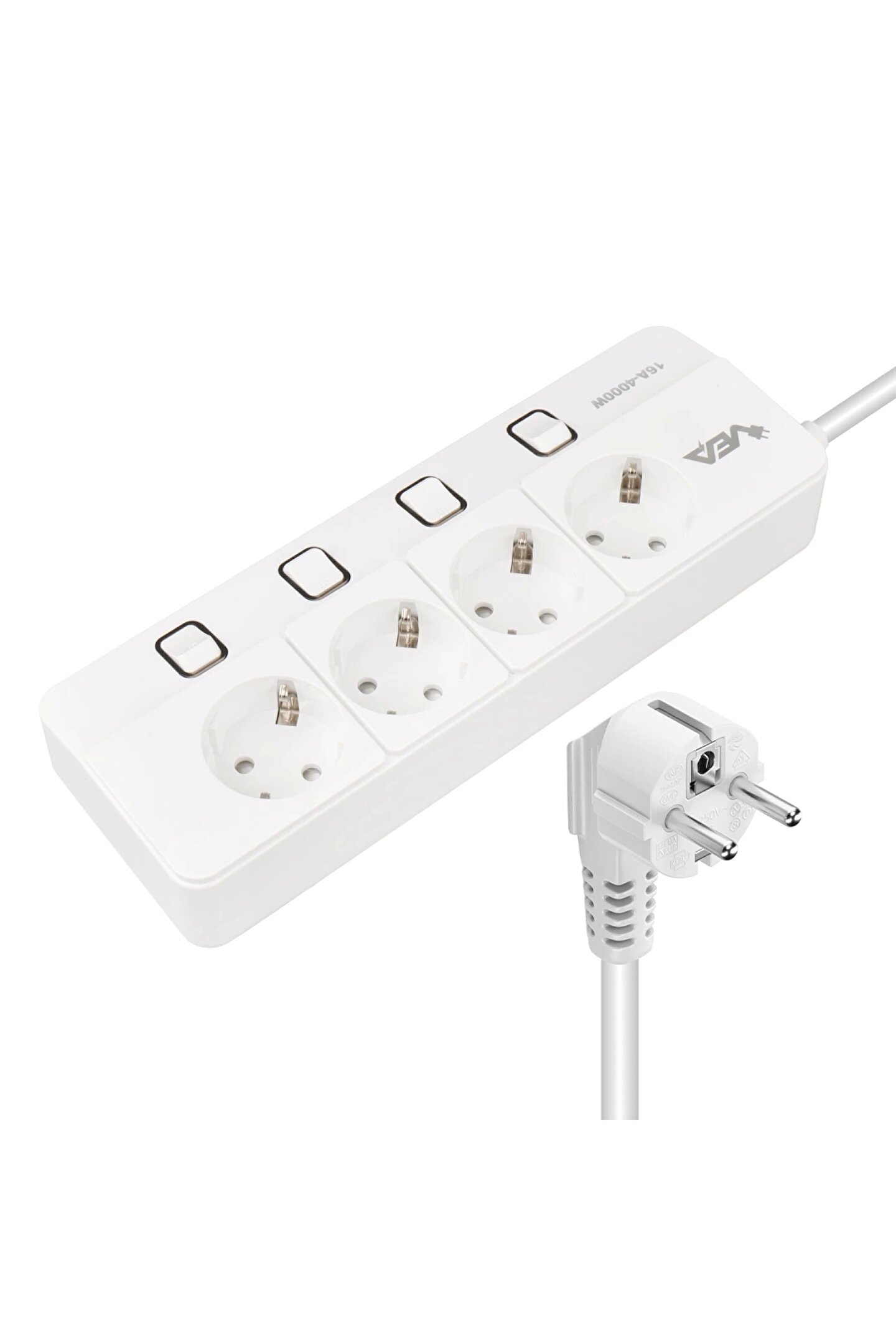 Yüksek Kapasiteli Anahtarlar: Her bir priz girişi için ayrı açma-kapama anahtarı, 10.000'den fazla aç-kapa desteği ile günlük kullanıma dayanıklıdır.