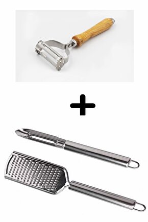 2 li çelik rende set + tahta saplı jülyen soyacak && mme shop &&