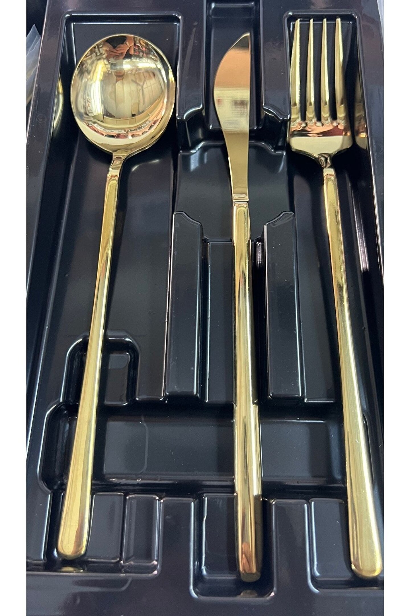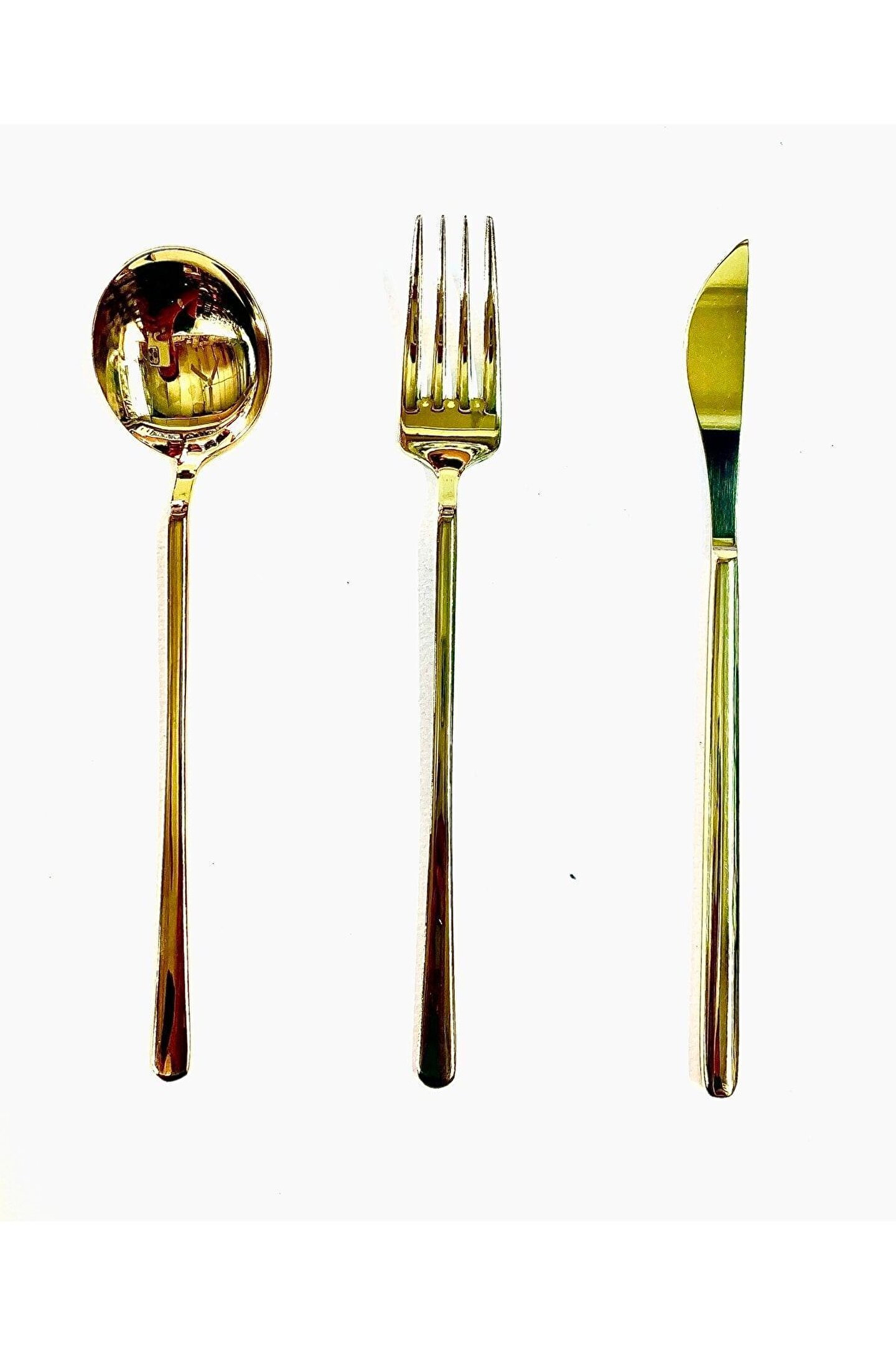12 kişilik geniş kapasiteye sahip, her türlü sofranız için ideal bir çatal; bıçak; kaşık seti; Dayanıklı çelik materyali ile uzun ömürlü kullanım sunar ve şık görünümüyle göz alıcı bir sofra düzeni sağlar; Altın rengi detaylarıyla zarif bir dokunuş ekleyerek sofralarınıza lüks bir hava katar;