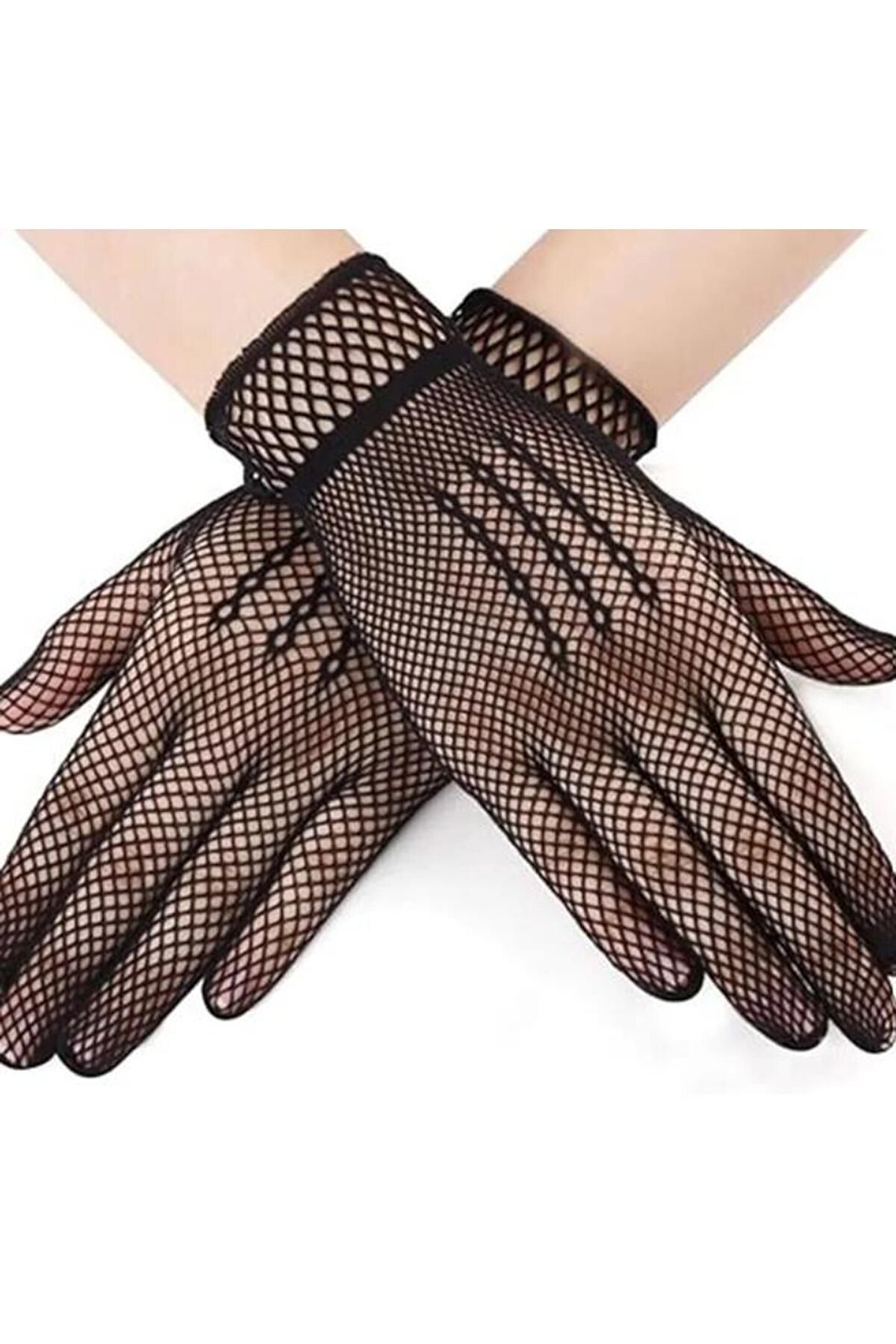 Himarry Siyah Renk Likralı File Eldiven Parmaklı Örgü Eldiven Yetişkin Boy