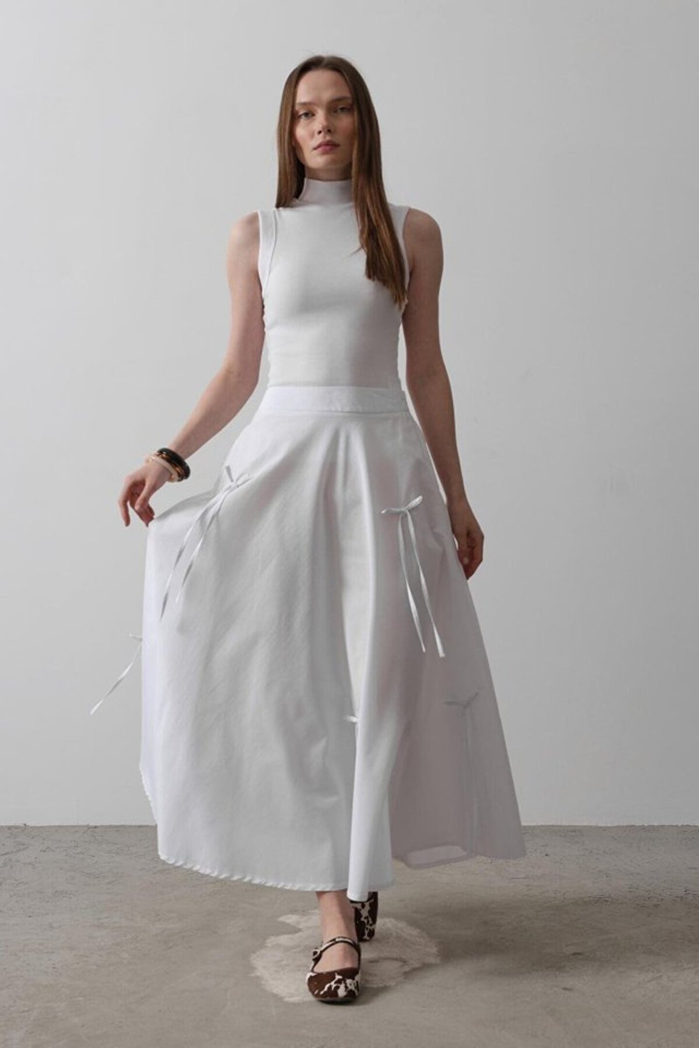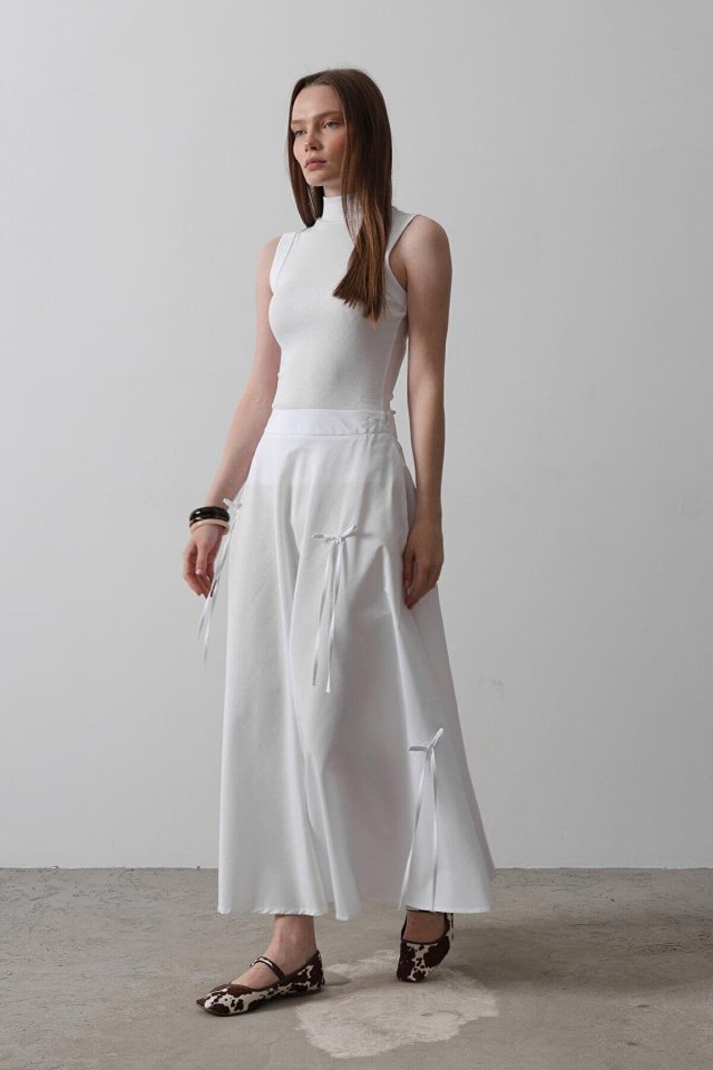 YOMNA Fiyonk Kloş Etek - Beyaz