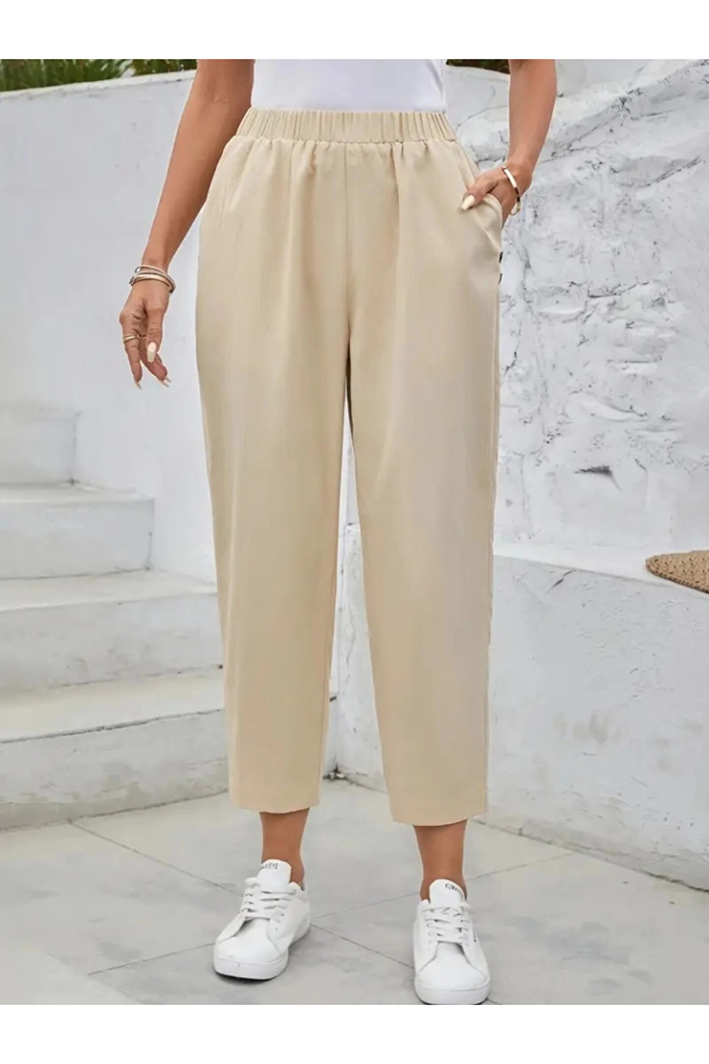 MDB Kadın Yüksek Bel Yandan Cepli Düğme Detaylı Geniş Kesim Ithal Krep Pantolon
