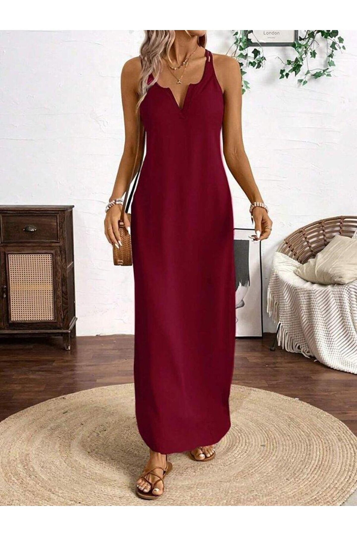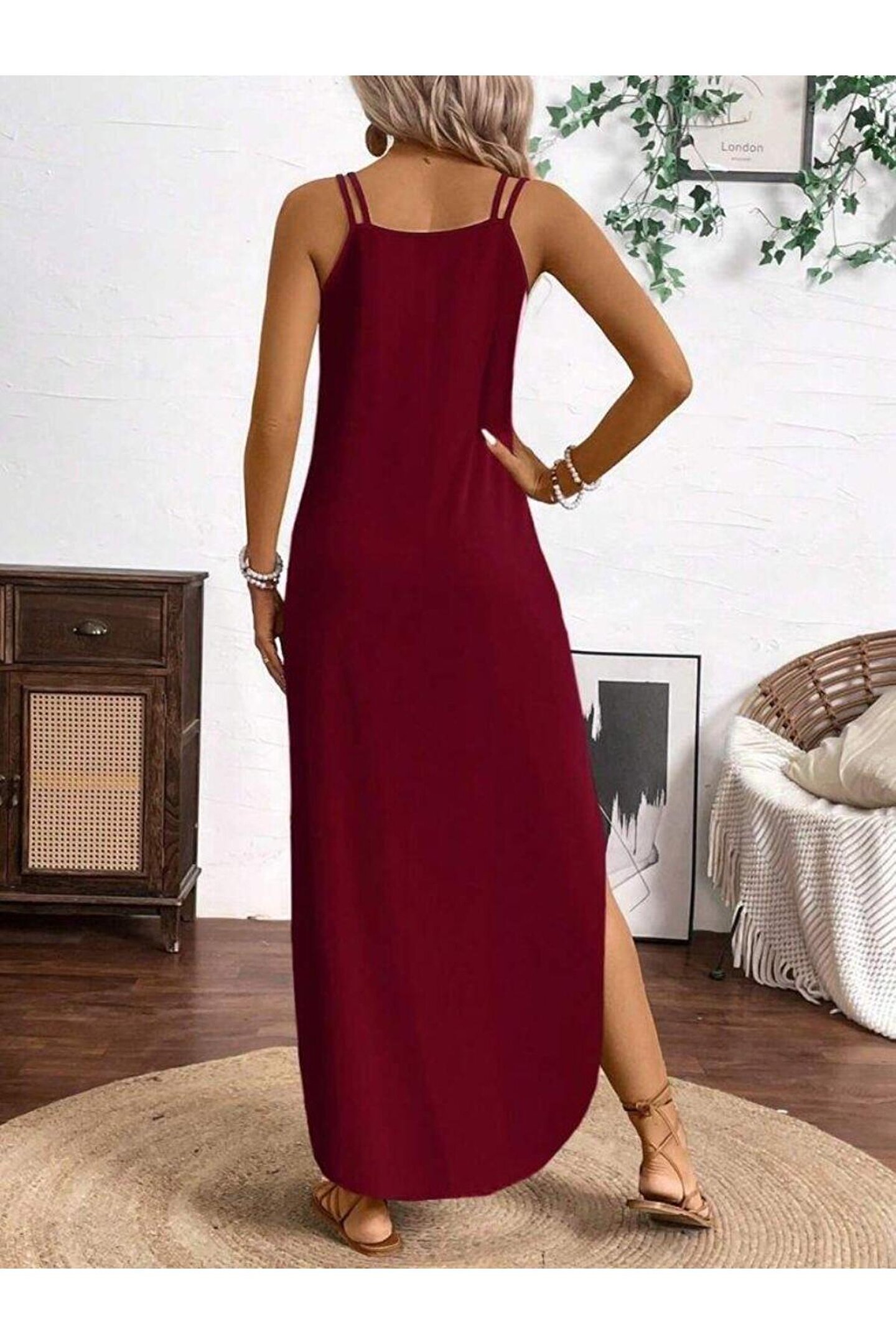Kadın Askılı Yuvarlak Yaka Asimetrik Detaylı Viskon Elbise.; Ürün detayları ve kullanım hissi kişisel tercihlere göre değişiklik gösterebilir.