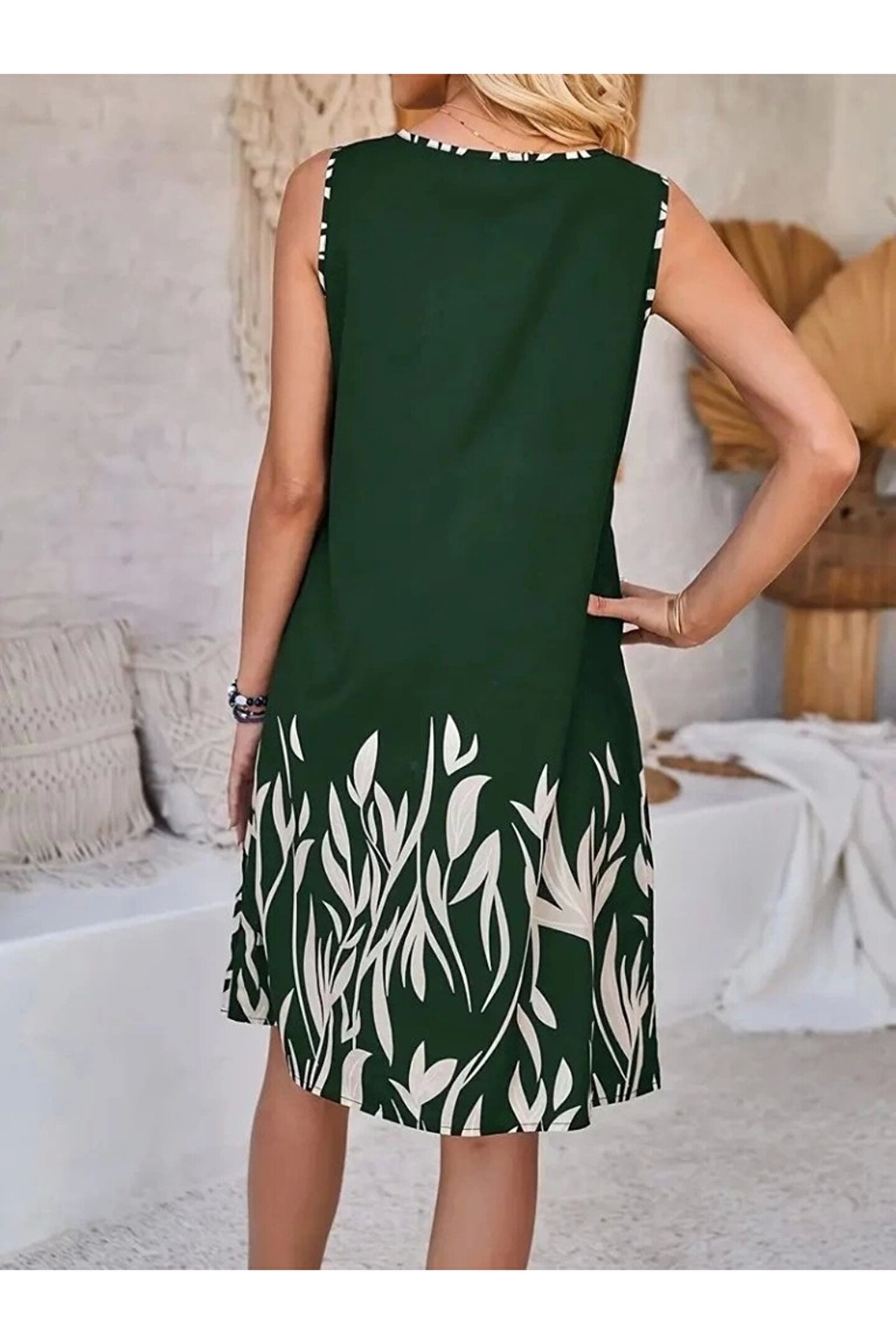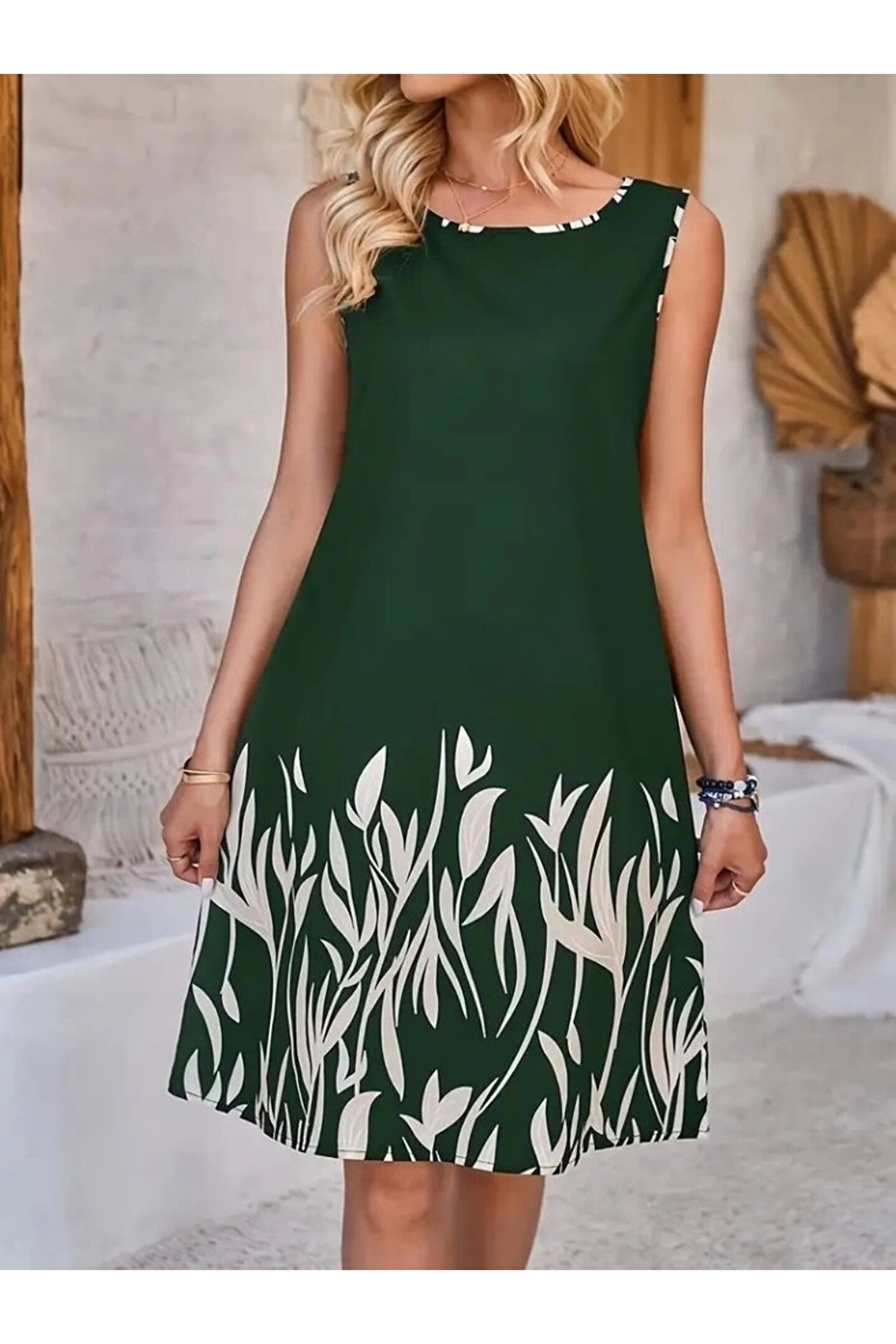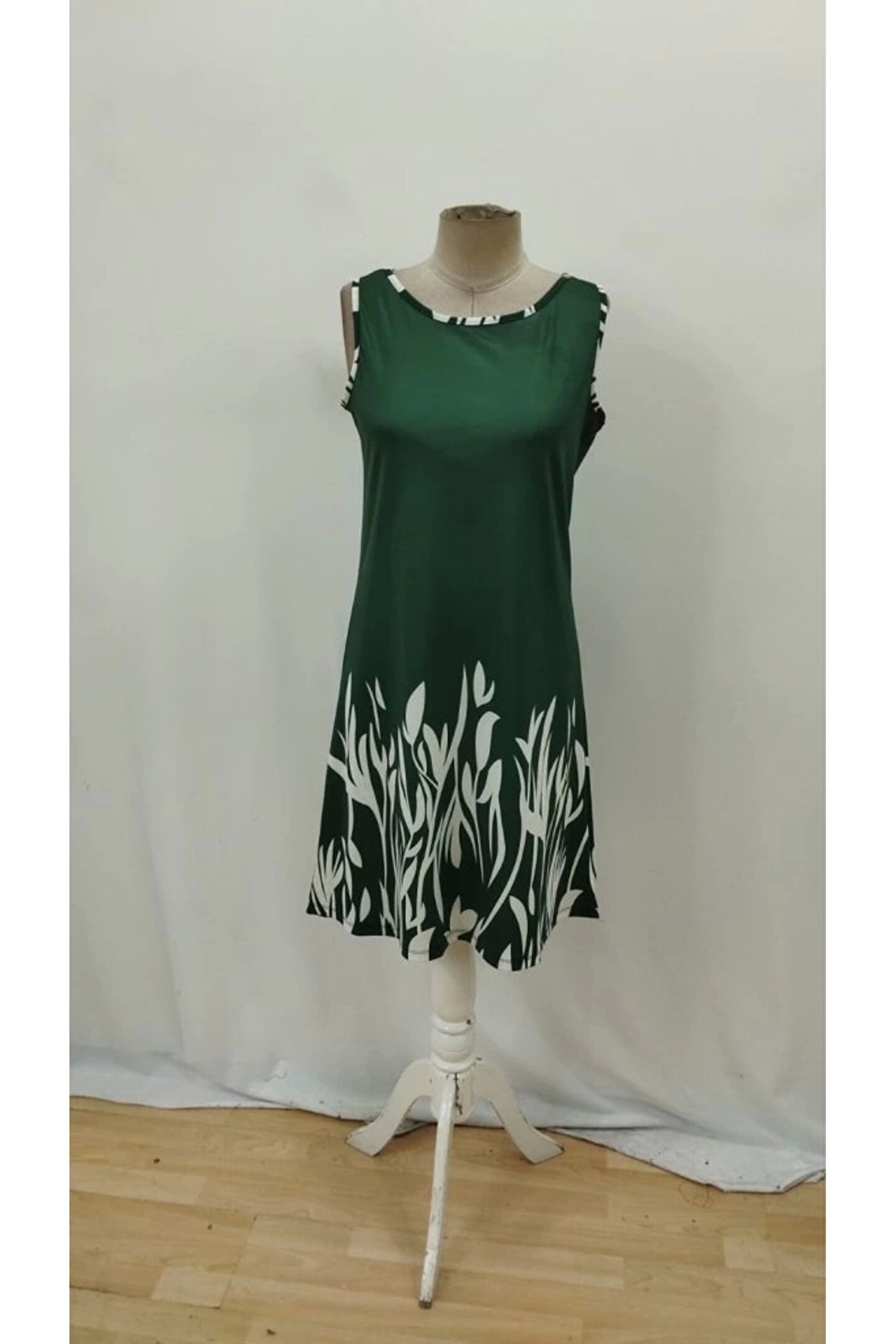 yonca aksesuar Kadın Askılı Yuvarlak Yakalı Yaprak Desenli Dalgıç Elbise