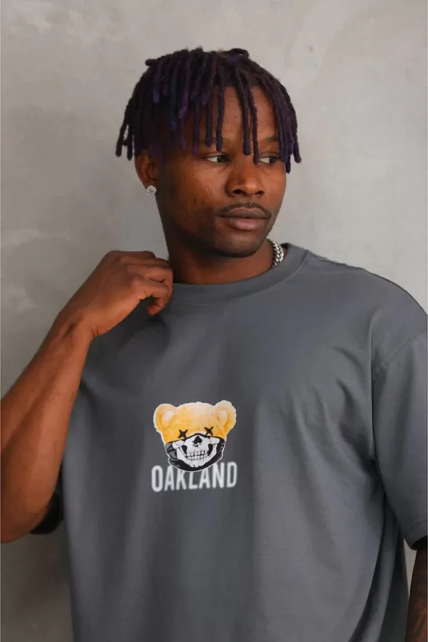 yonca aksesuar Unisex Baskılı Oversize T-Shirt - Füme