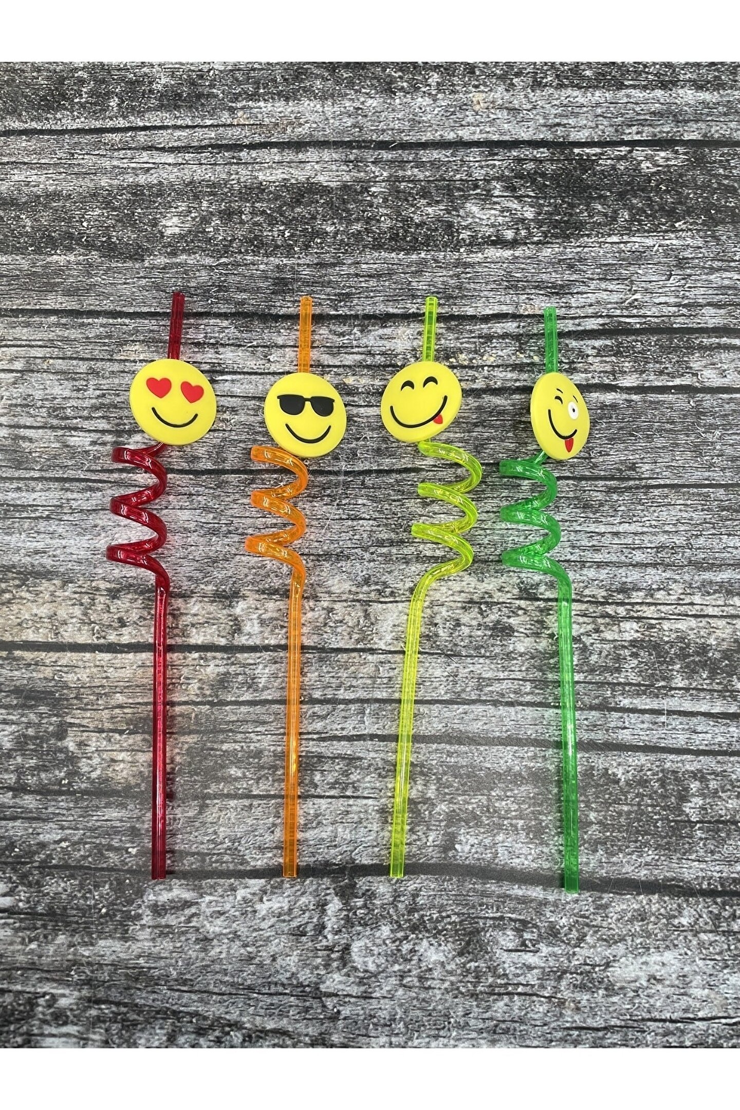 YzHome 4 Lü Renkli Plastik Şirin Emoji Figürlü Pipet