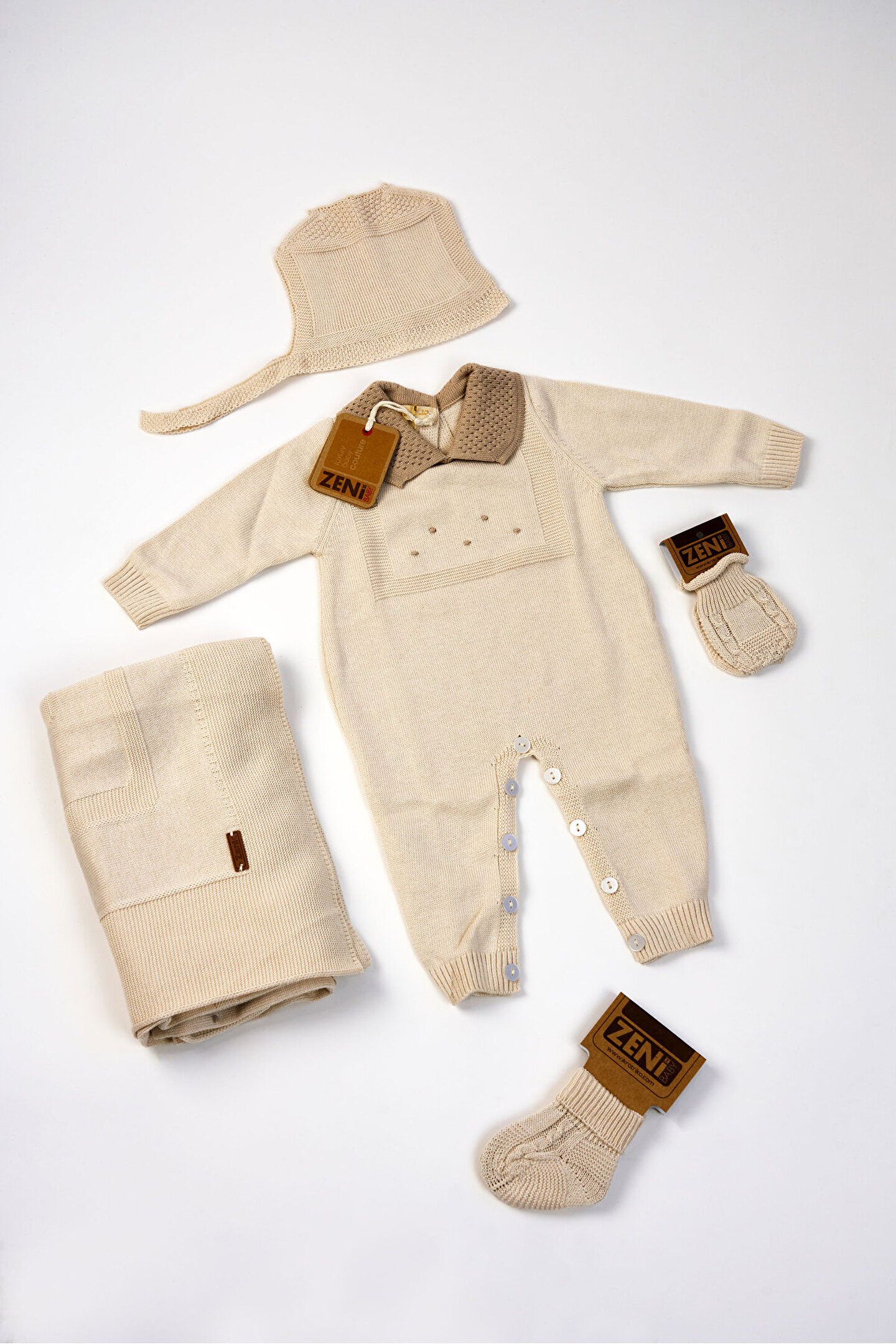 ZENİ BABY Yeni Doğan 5li Örme Triko Tulum Set (Özel Kutulu)