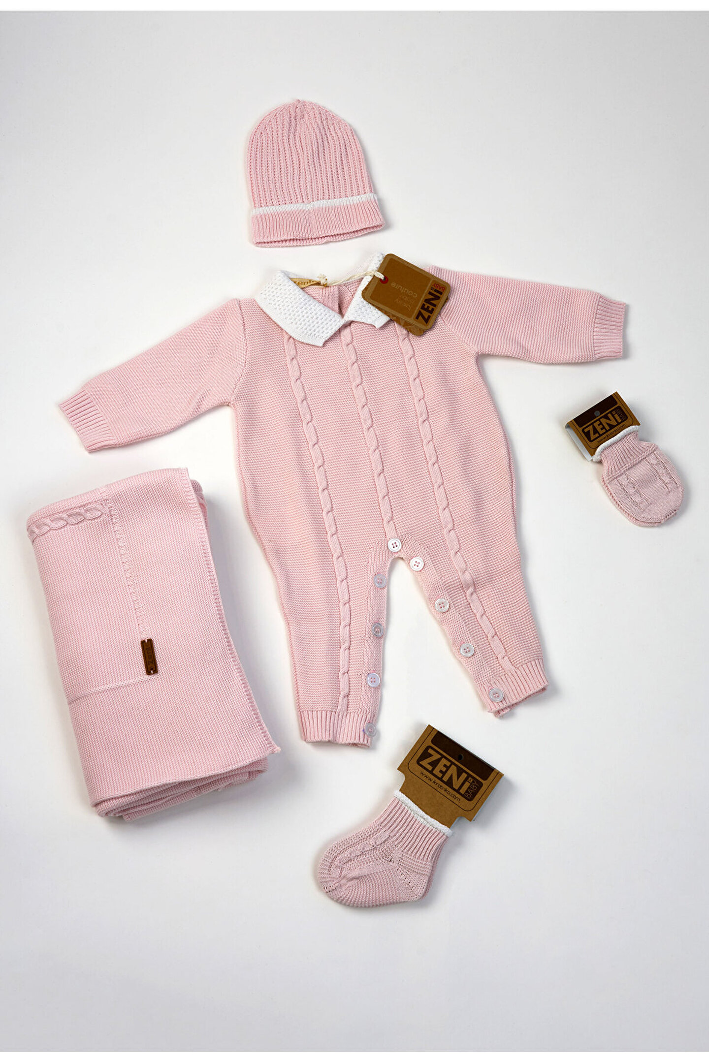 ZENİ BABY Yeni Doğan 5li Örme Triko Tulum Set (Özel Kutulu)