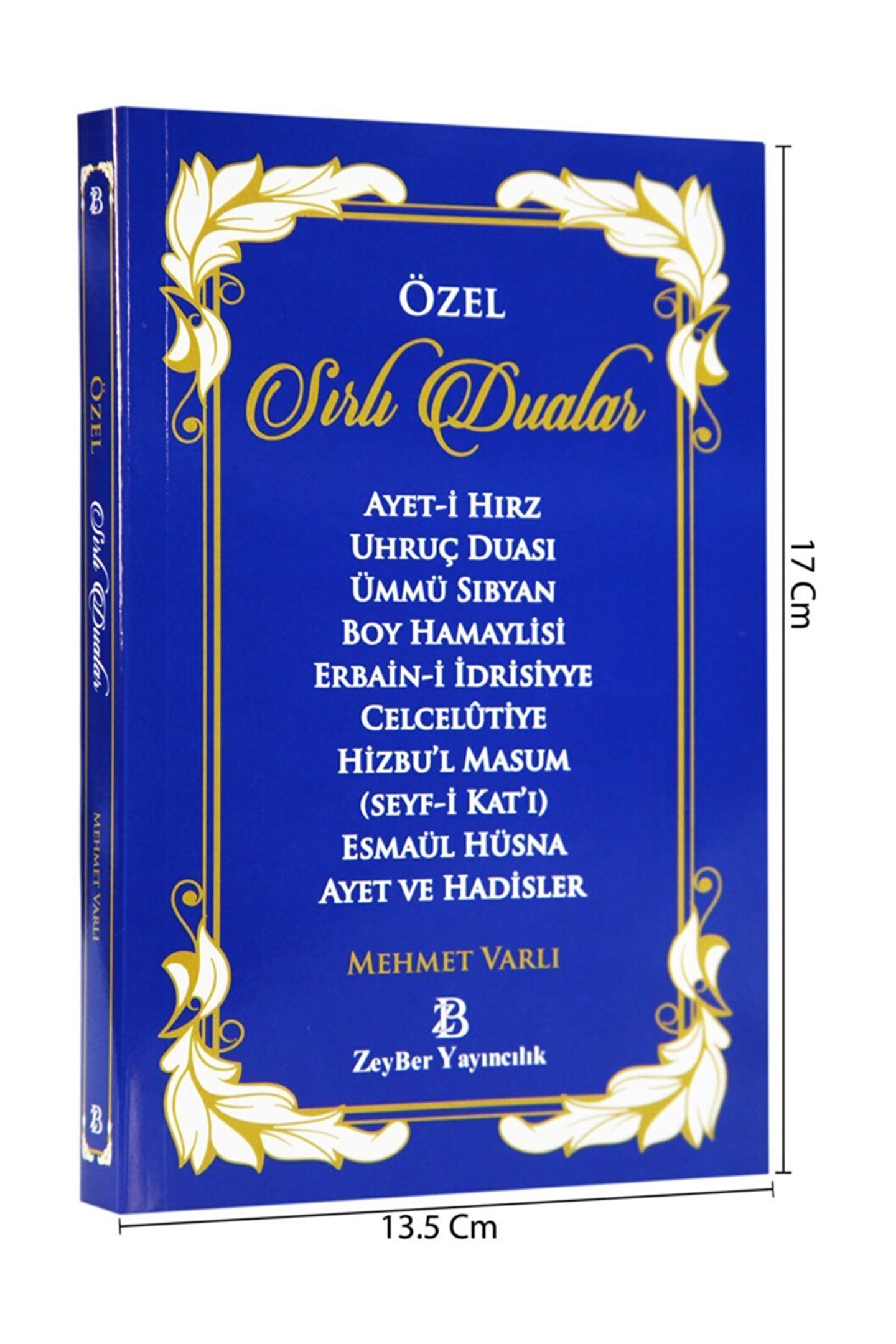 Özel Sırlı Dualar Mehmet Varlı / Zeyber Yayıncılık Basım Yılı: 2017; Baskı: 1; Sayfa Sayısı: 303; Kağıt Türü: Kitap Kağıdı; Ebat: 13,5 x 21; Dil: Türkçe; Cilt Durumu: Karton Kapak; ISBN-10: 6058274501; Yazar: Mehmet Varlı; Ayet-i Hırz Uhruç Duası Ümmü Sıbyan Boy Hamaylisi Erbain-i İdrissiye Celcelutiye Hizbu'l Masum (Seyf-i Kat'ı) Esmaül Hüsna Ayet ve Hadisler