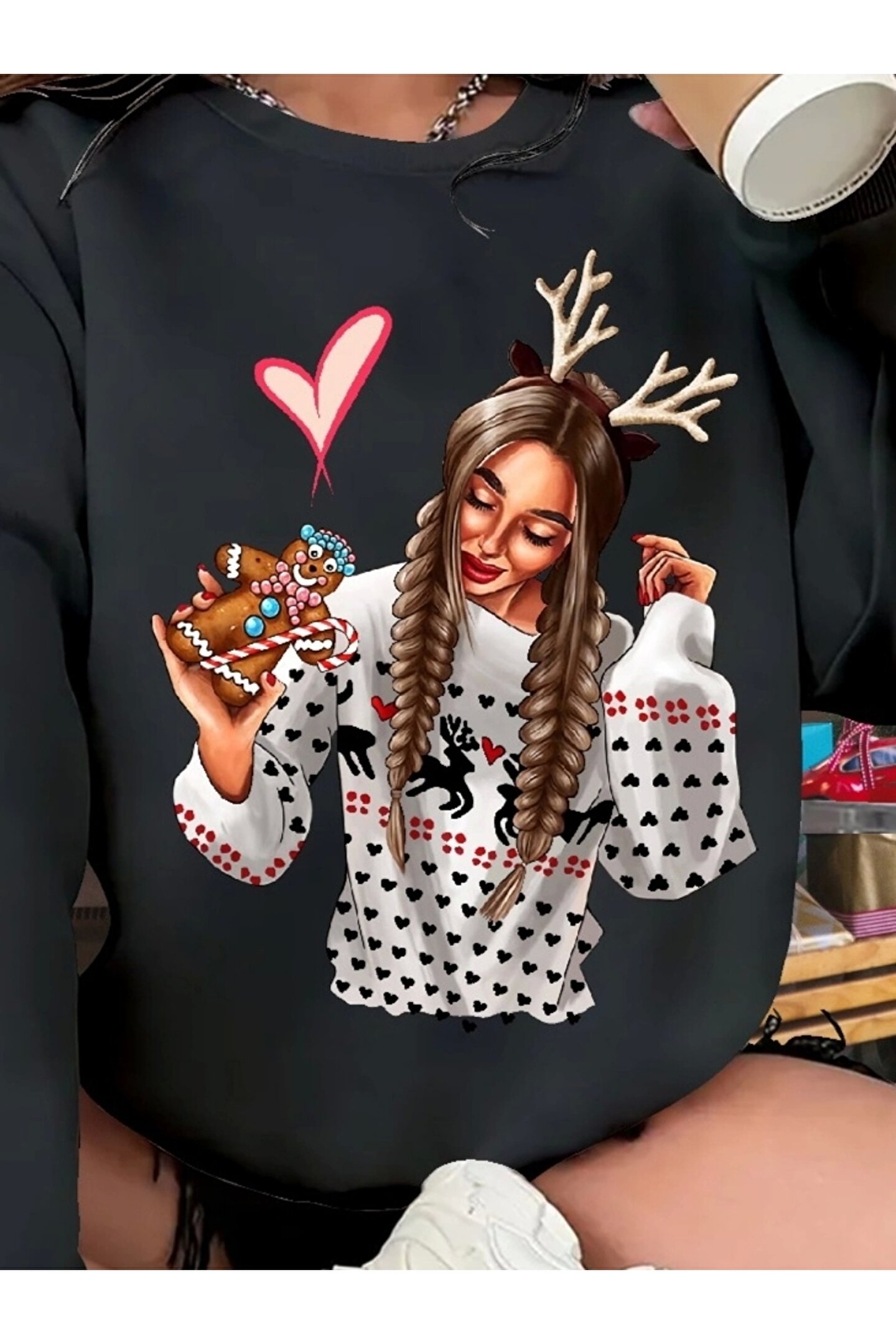 Kadın Yılbaşı özel Uzun Kollu Bisiklet Yaka Desenli Viskon Iki Iplik Bluz