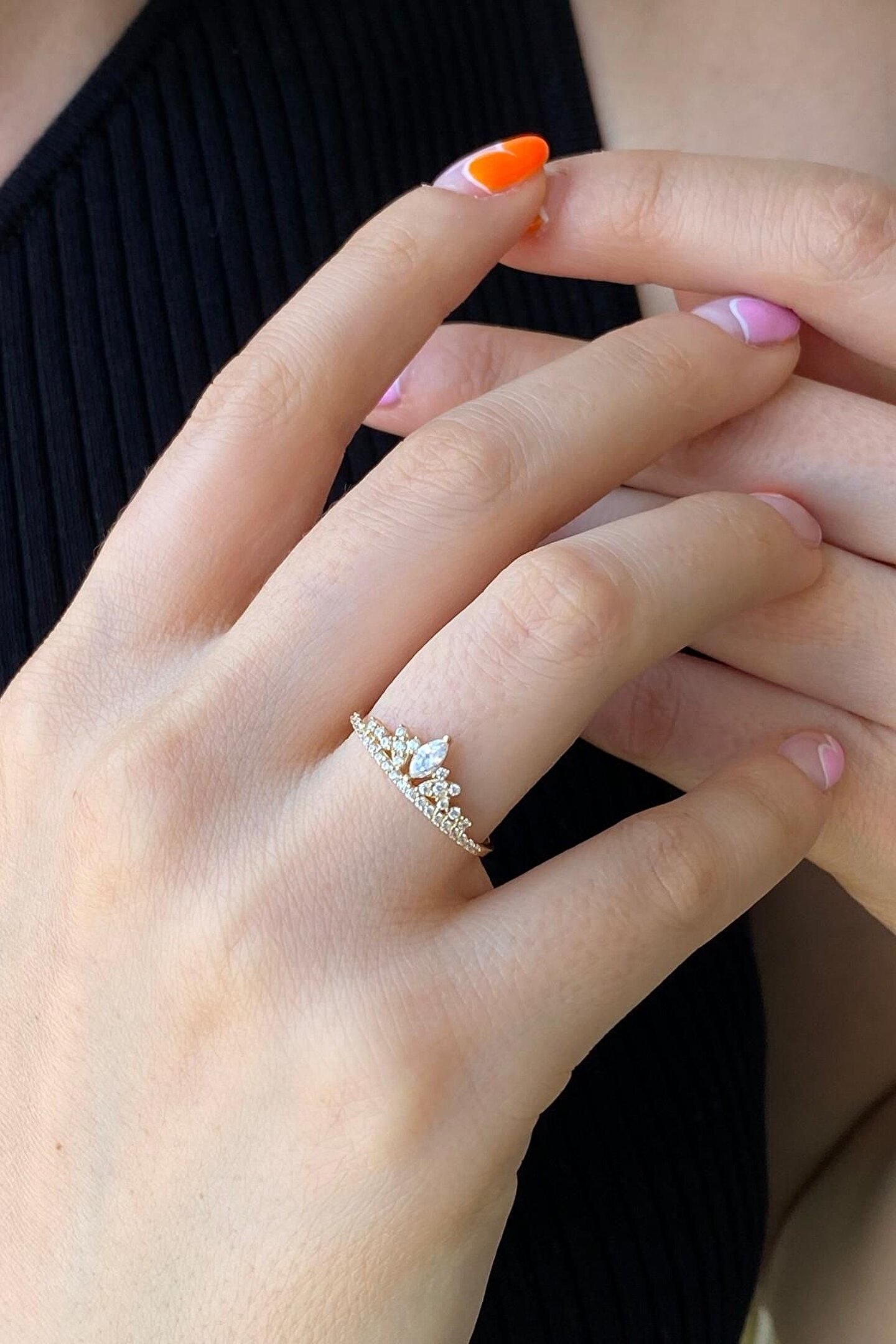 14 Ayar Altın Kadın Prenses Tacı Yüzük