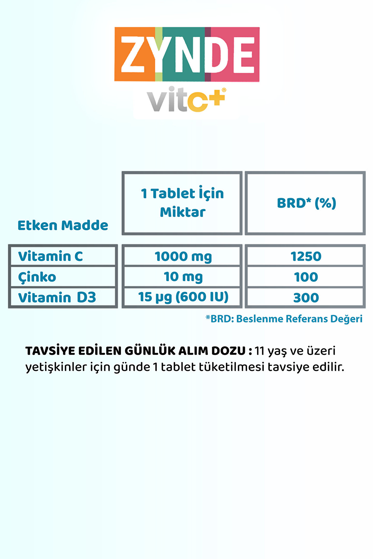 zynde Vit C+ Vitamin C İçeren Takviye Edici Gıda 30 Tablet